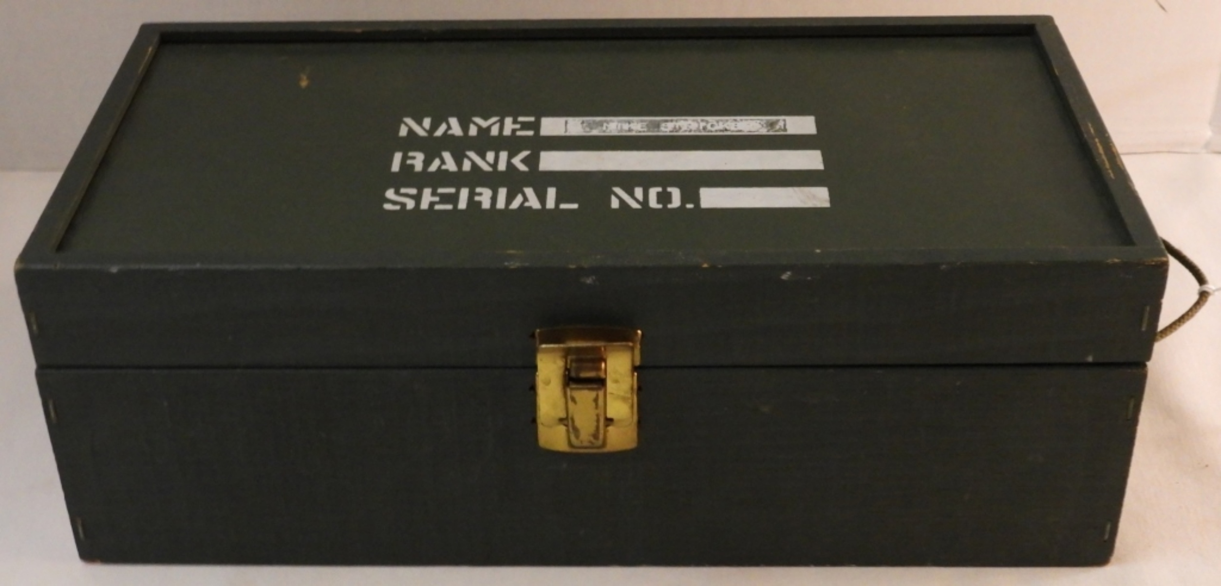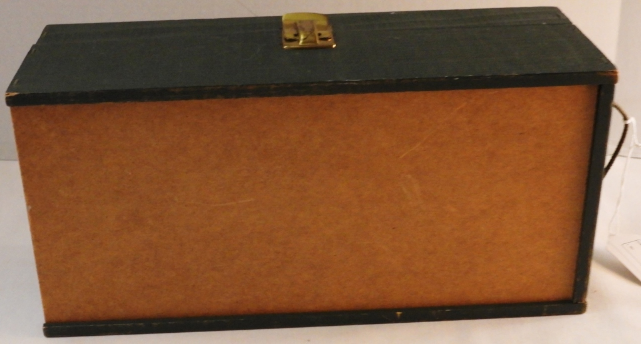 Wooden box. The side is broken so the bottom can slide out if tipped.