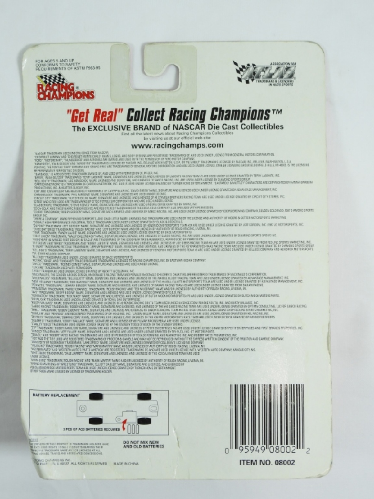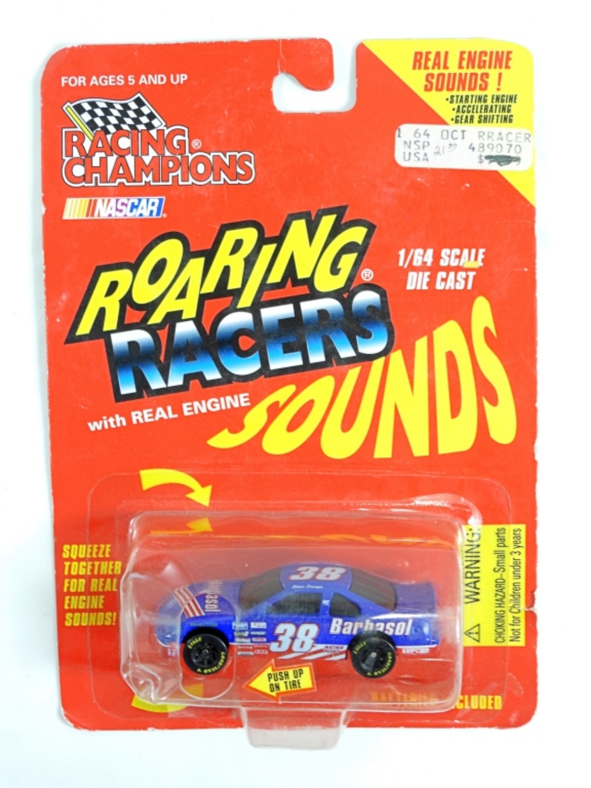 3 Racing Champion cars, the 1st car is a NASCAR Stock Car is the #3 car. The package is in good condition. The 2nd car is a NASCAR Roaring Racers #38 car. The package is in good condition. The 3rd car is a NASCAR