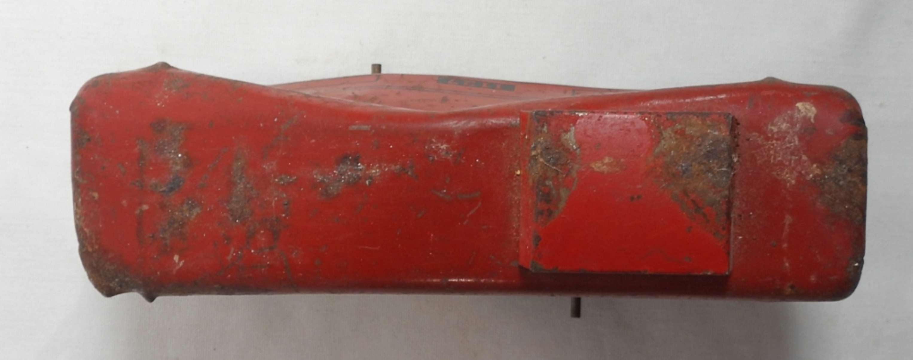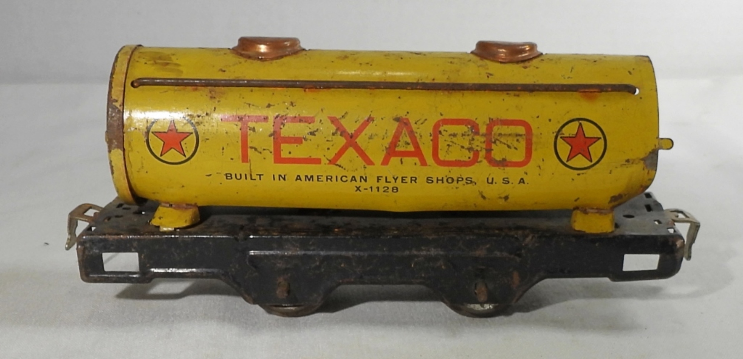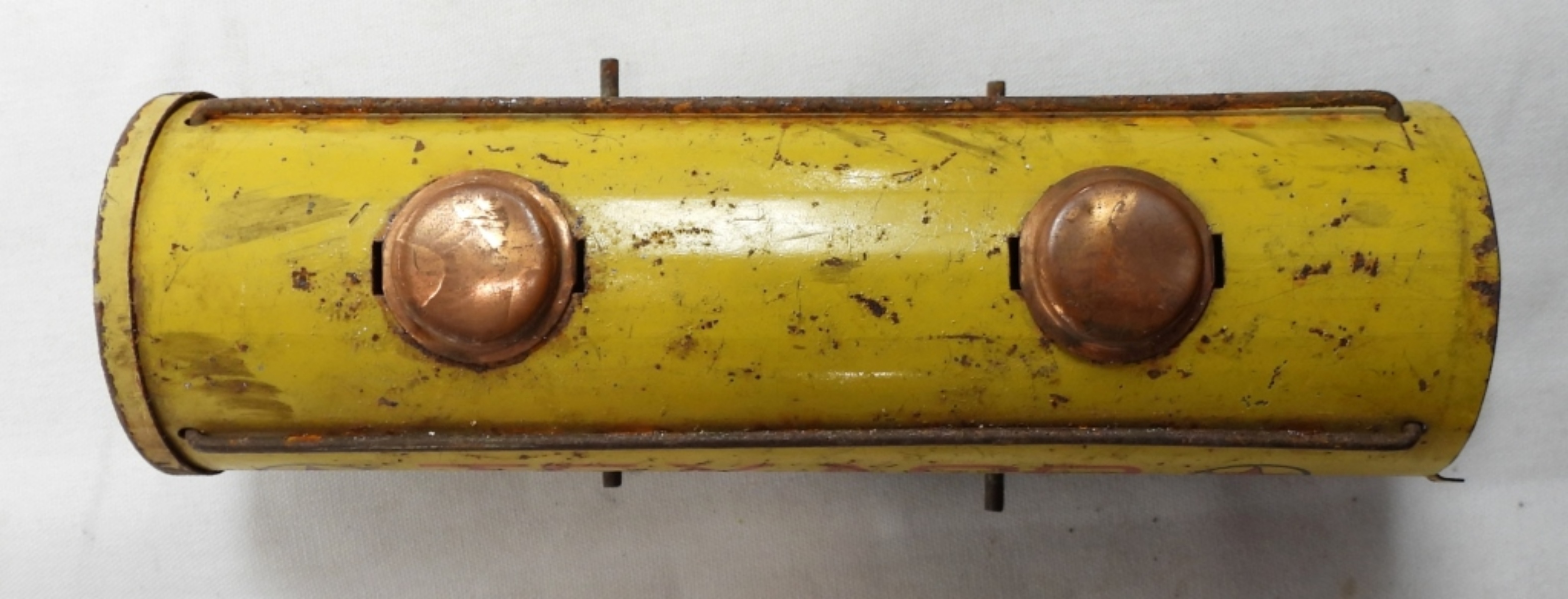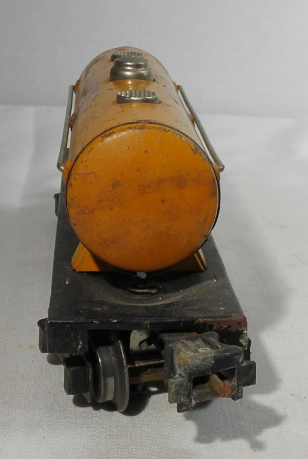tin pre & post war train cars, Lionel Lines 2679, Baby Ruth cargo car, 10″, all wheels present and working well, some chipped paint and rust, Lionel Lines 2682 caboose, 9″, missing one of the attaching links, rust and