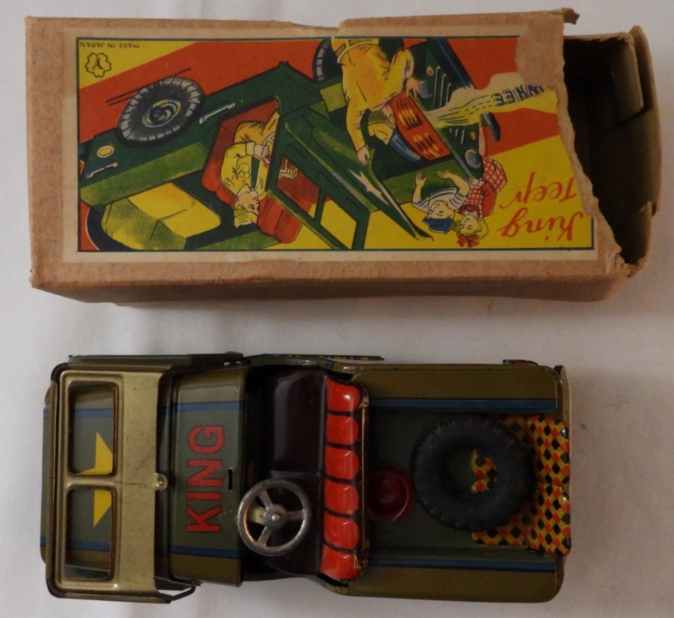 Made in Japan, works great, comes in original box, box top is missing a part