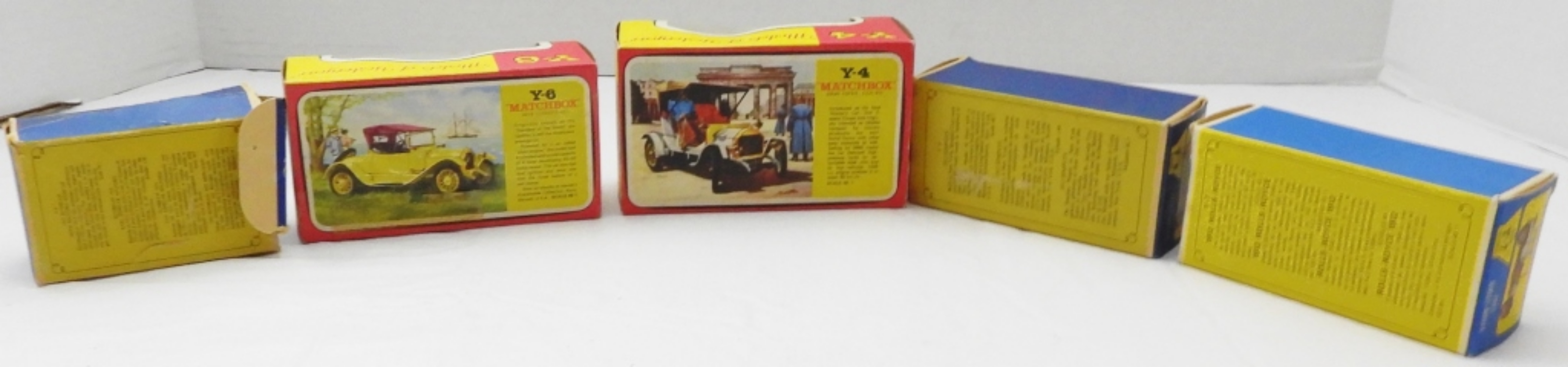 Models of Yesteryear, Y-9, Y-8, Y-7, Y-6, and Y-4, original boxes, Y-8 box is damaged