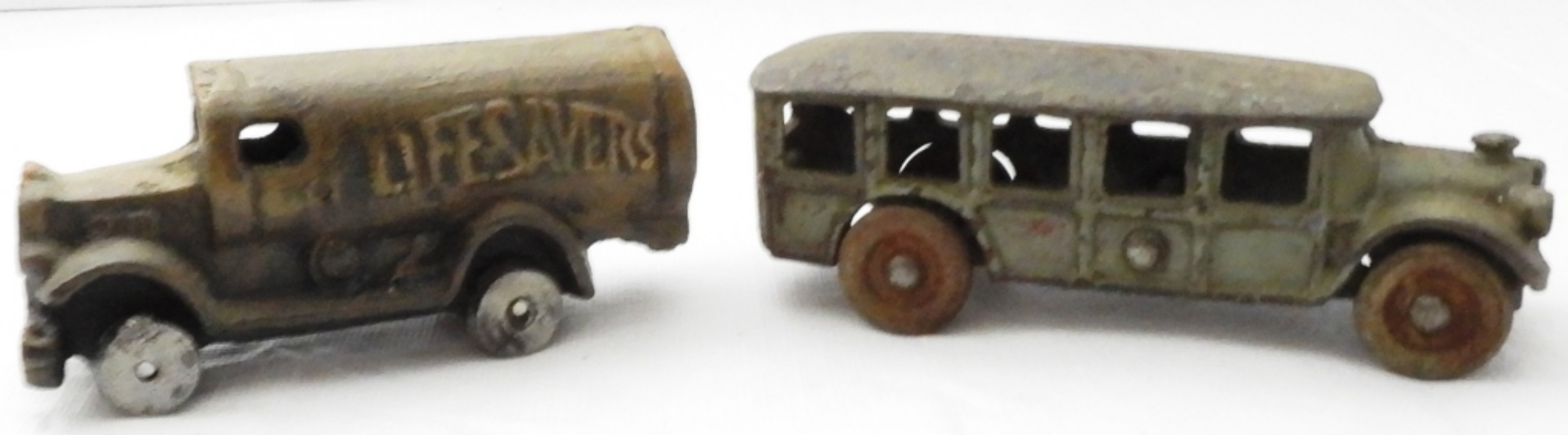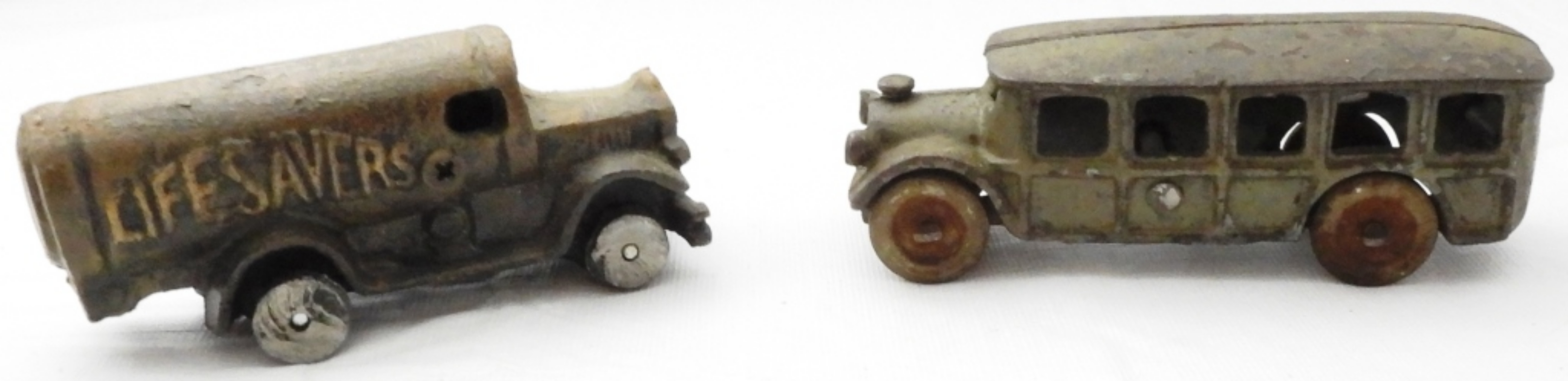 Lifesavers tanker, and a bus, with movable wheels, 2″ high