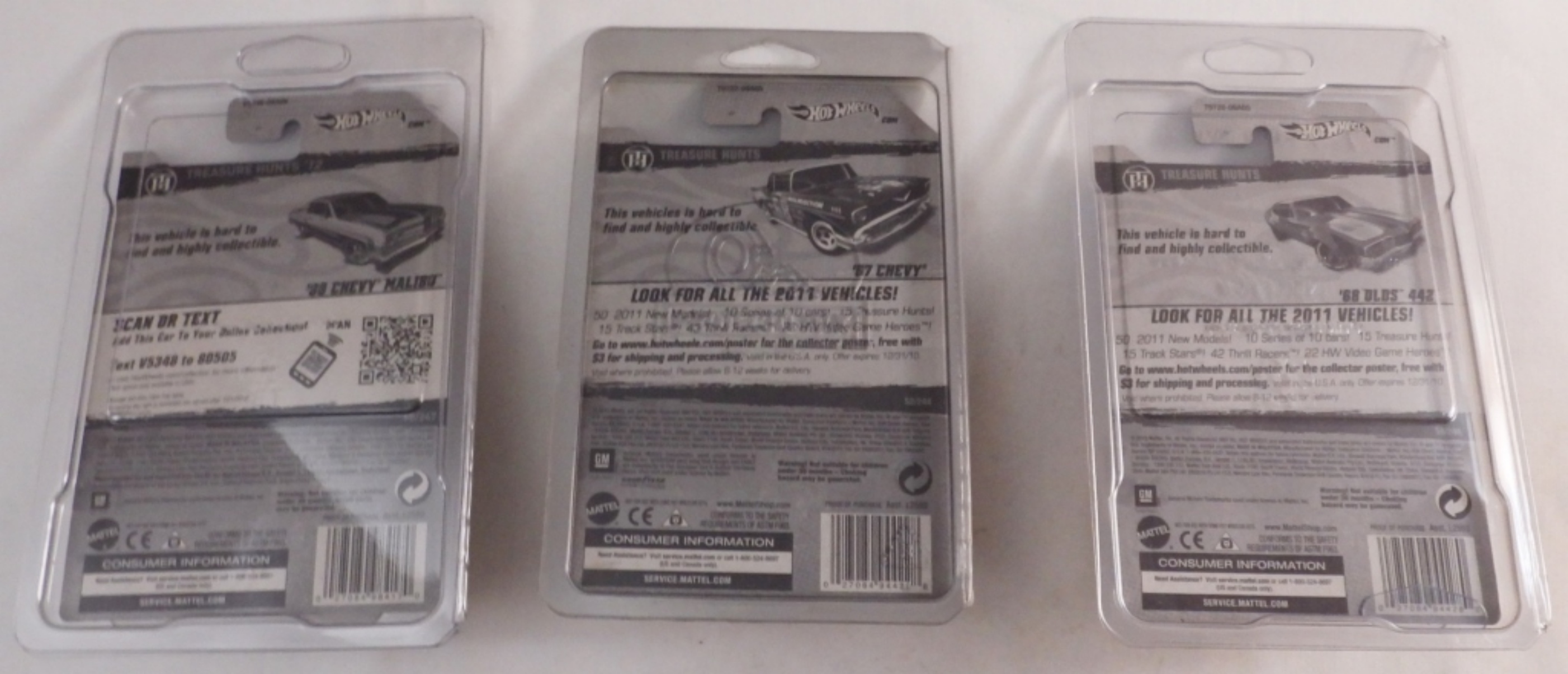 Like new in original package! 1) 2/15 ’57 Chevy 2) 8/15 ’68 Olds 442 3)10/15 ’65 Chevy Malibu