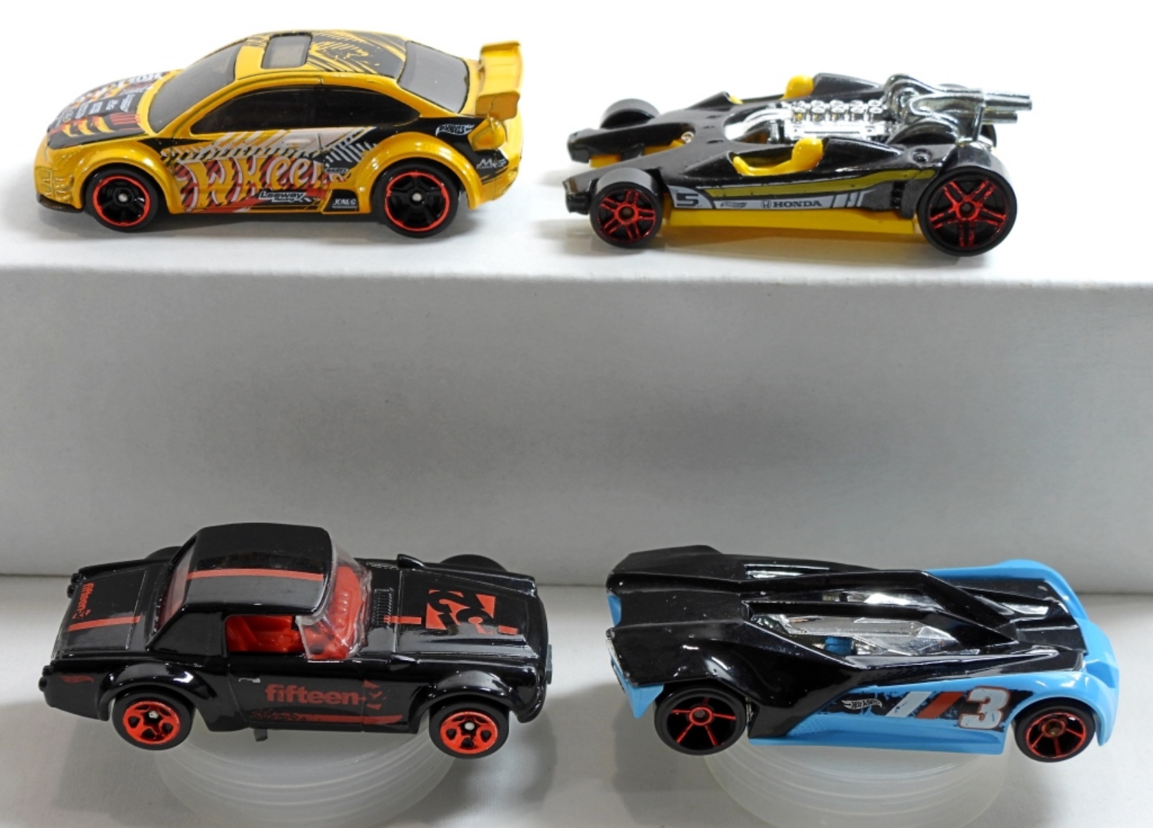 (4) Variety Hot Wheels racing cars- 2007 Honda Racer, 2008 Ford Focus, 2007 Split Vision, DTW94 Fairlady 2000, none of the cars come in or with original box, or packaging. In fair to good condition, pre owned.