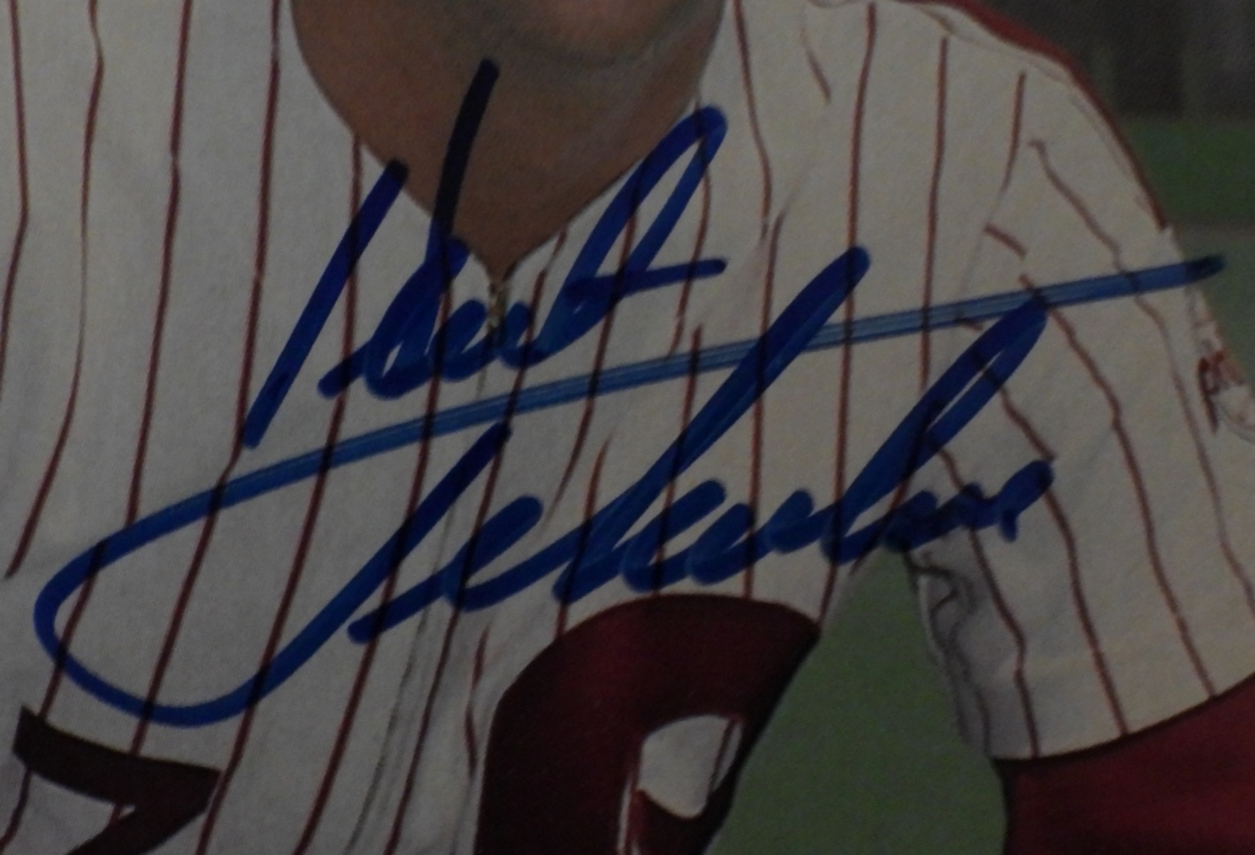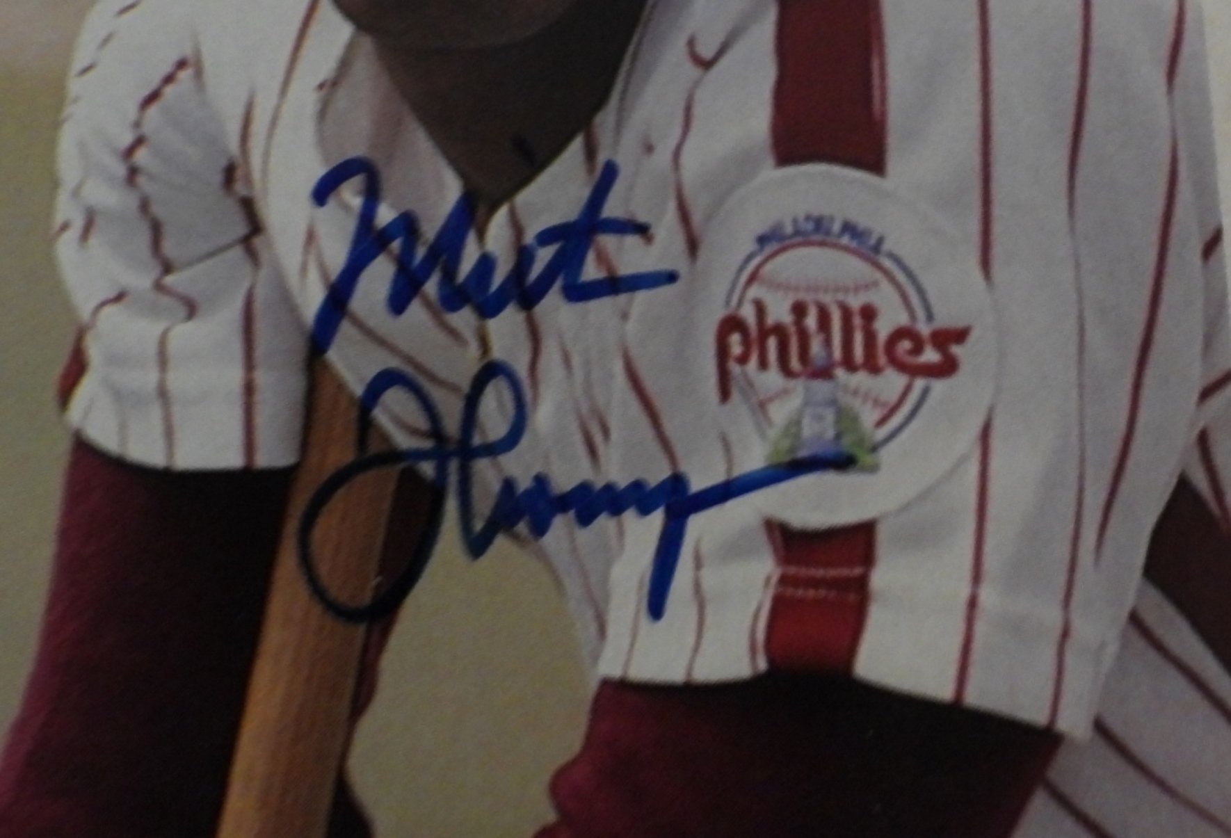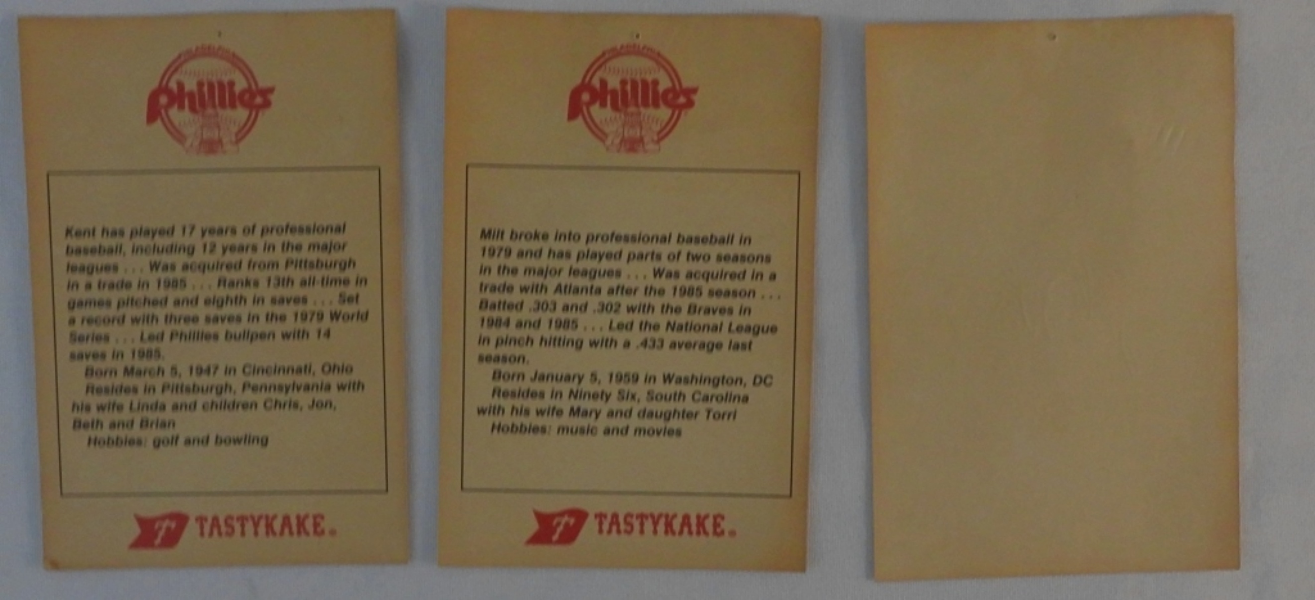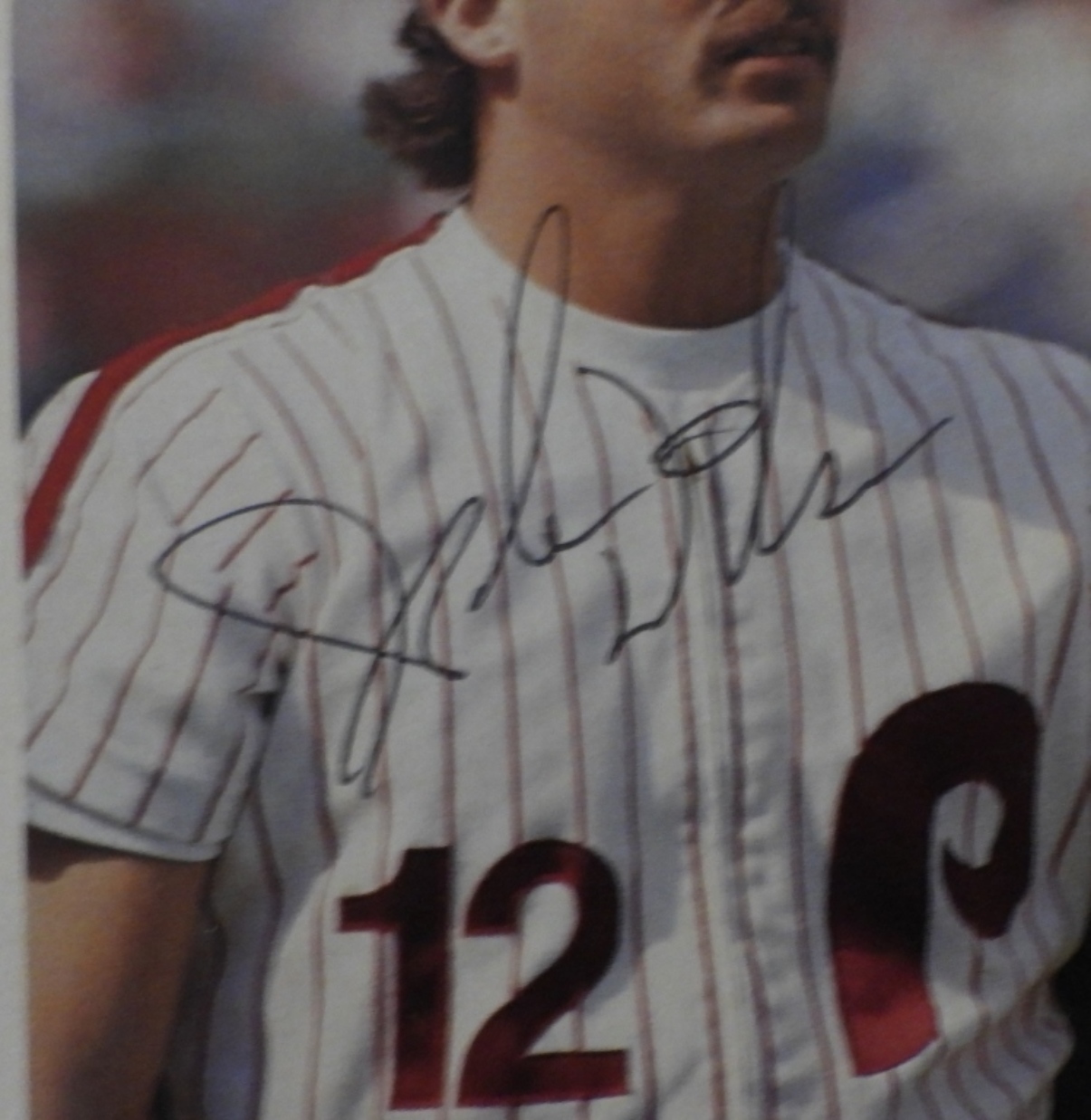 NO COA (2) Kent Tekulve, (1) Glen Wilson, (1) Milt Thompson, and an unsigned photo of Joe Demaggio, Mickey Mantle, and Ted Williams