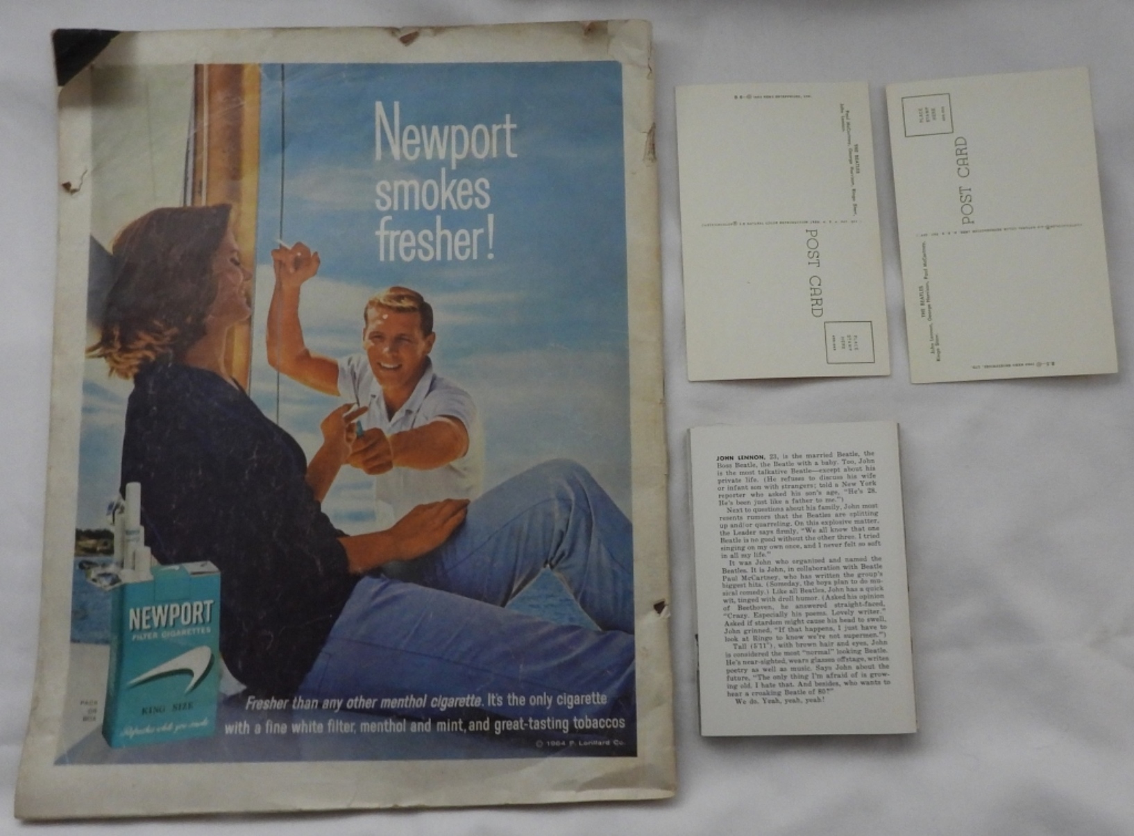 (2) Post cards, Dell 20 wallet photos, & March 21, 1964 POST Magazine (It does have some bends to pages and cover)
