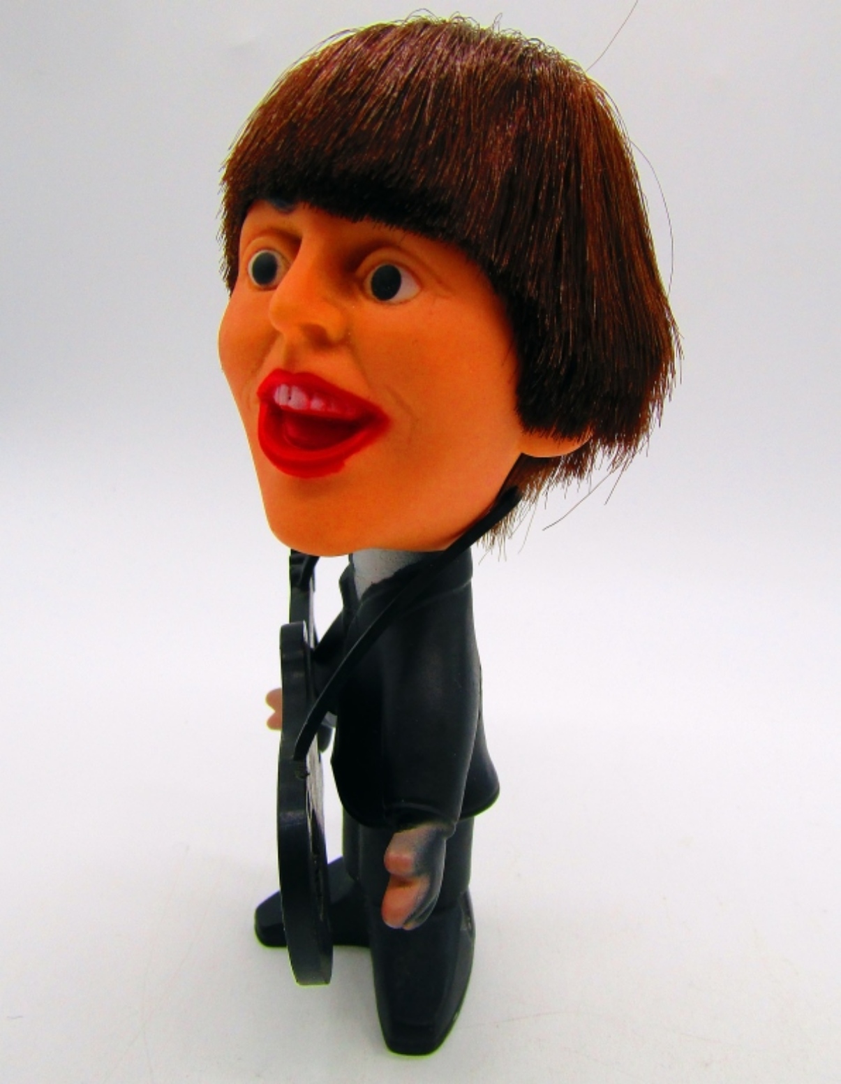 No box. Hard body with guitar. The handle for his guitar is broken.