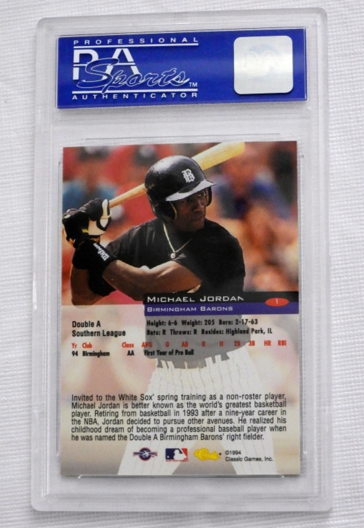 1994 Classic Michael Jordan Birmingham. MINT 9. Graded by professional sports authenticator