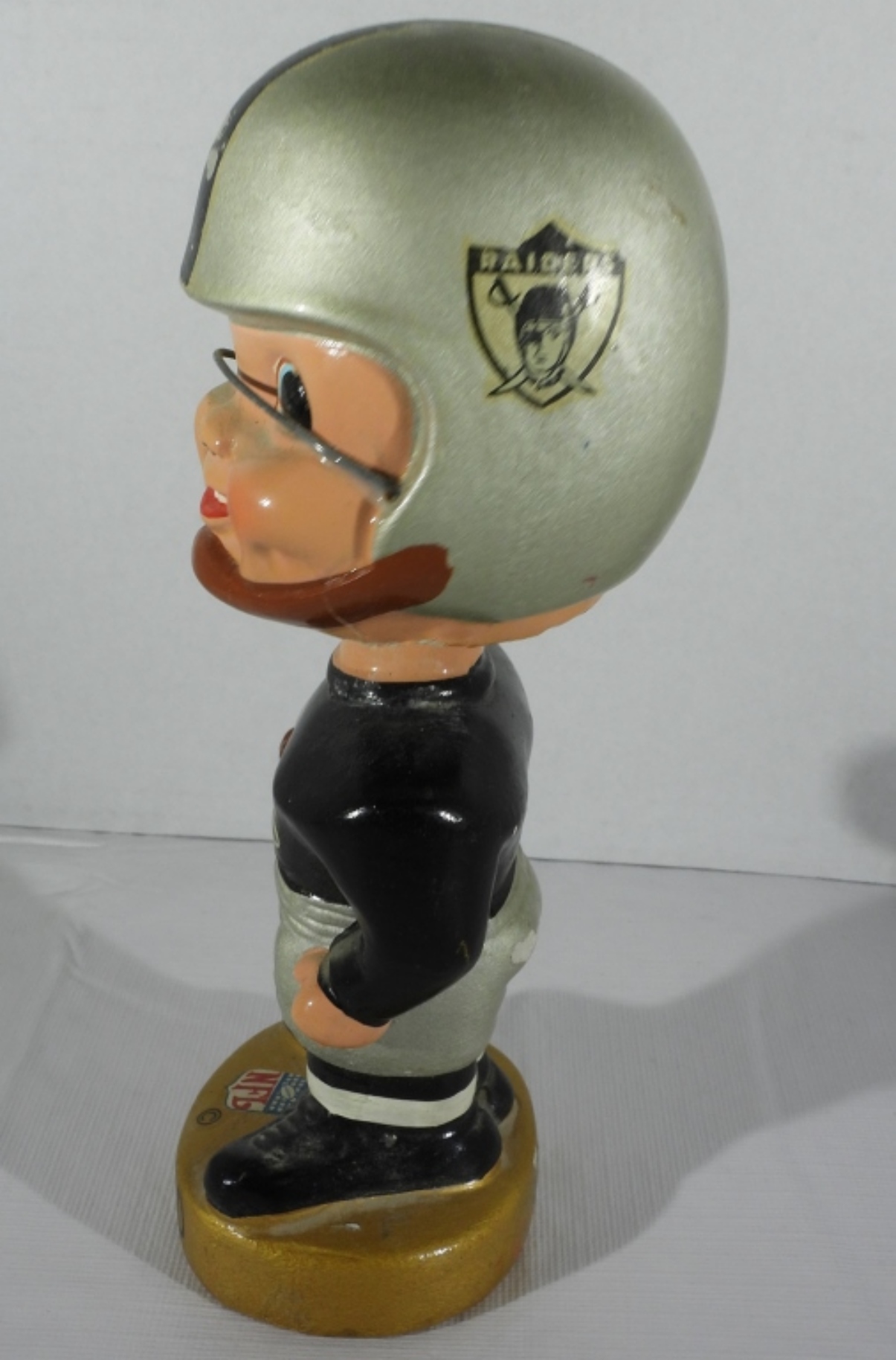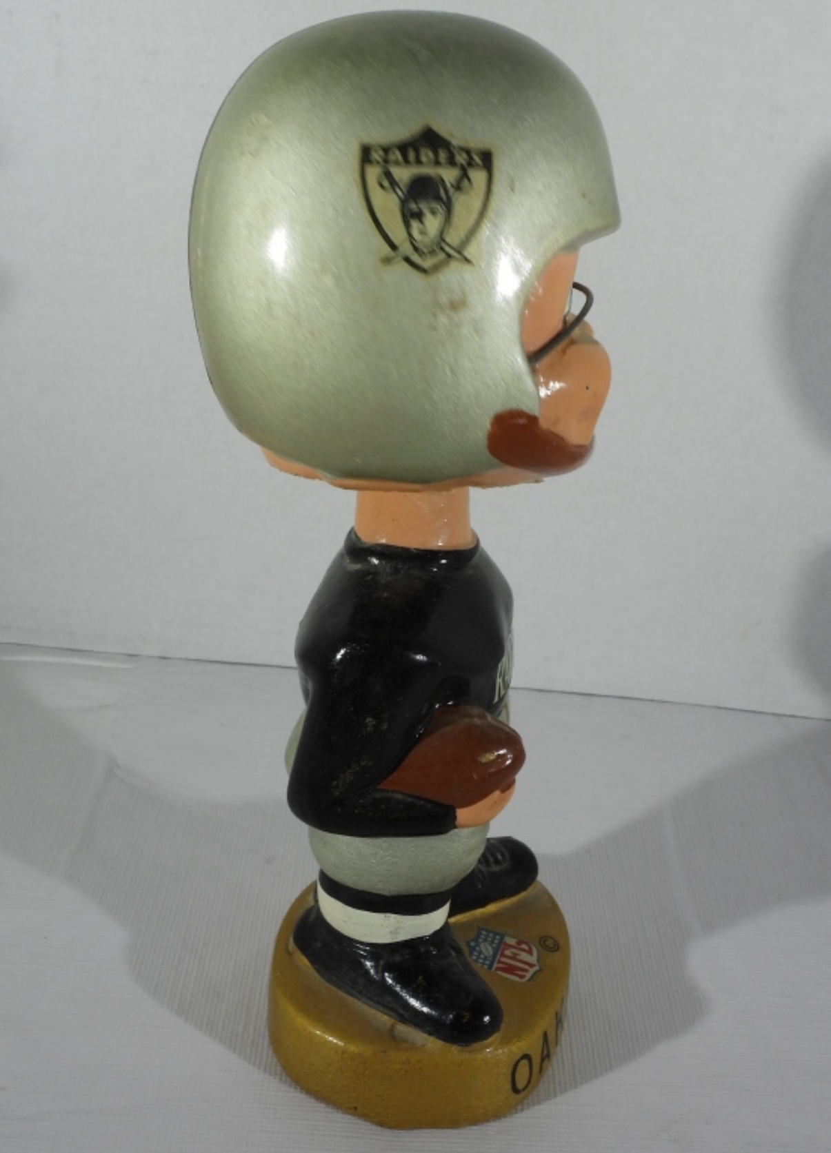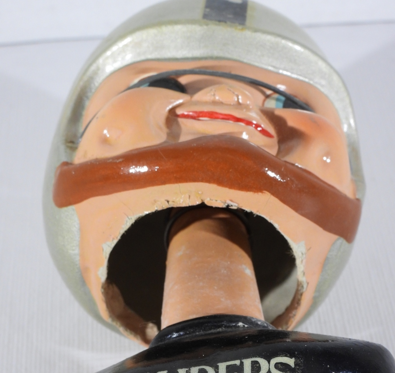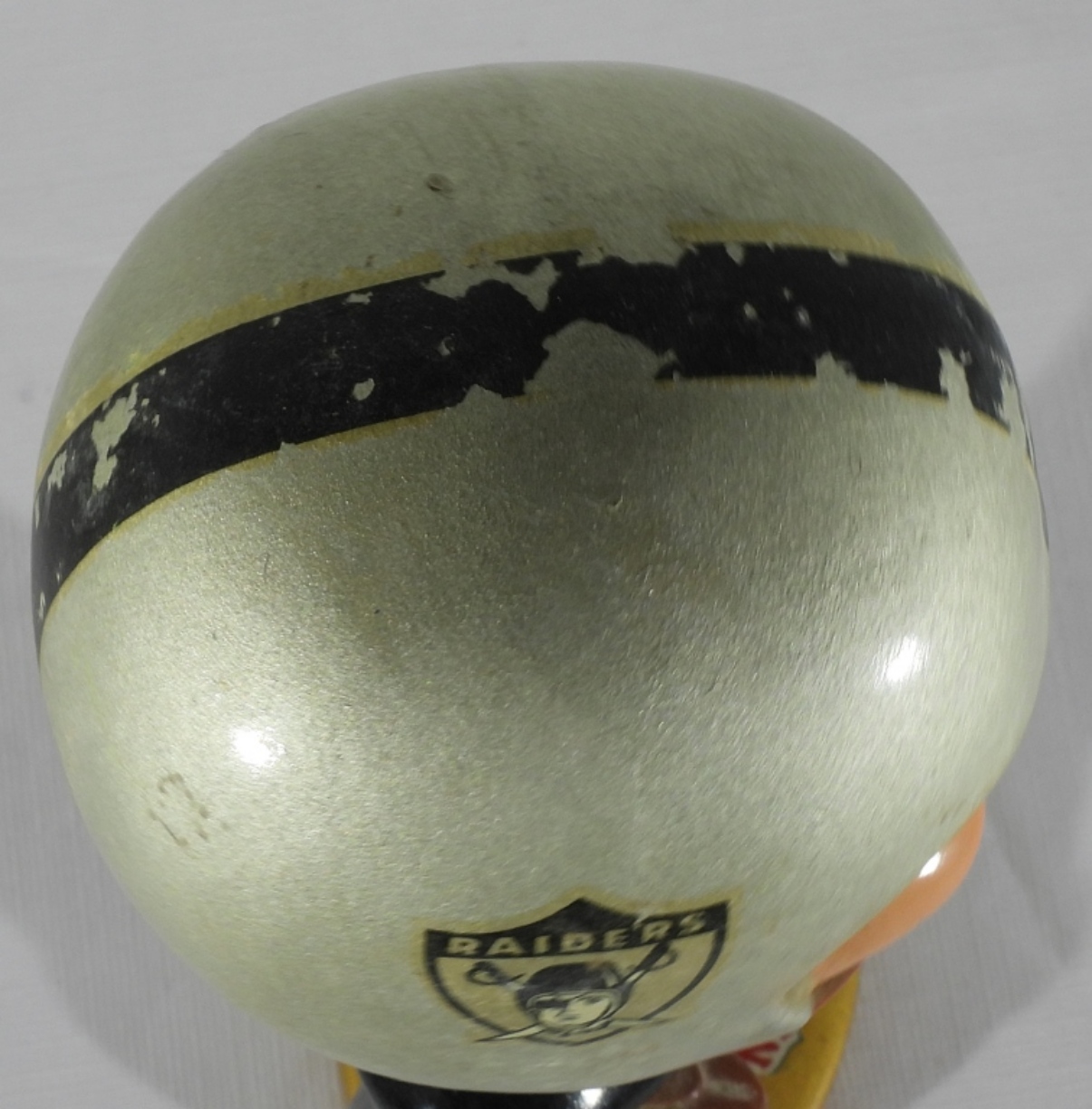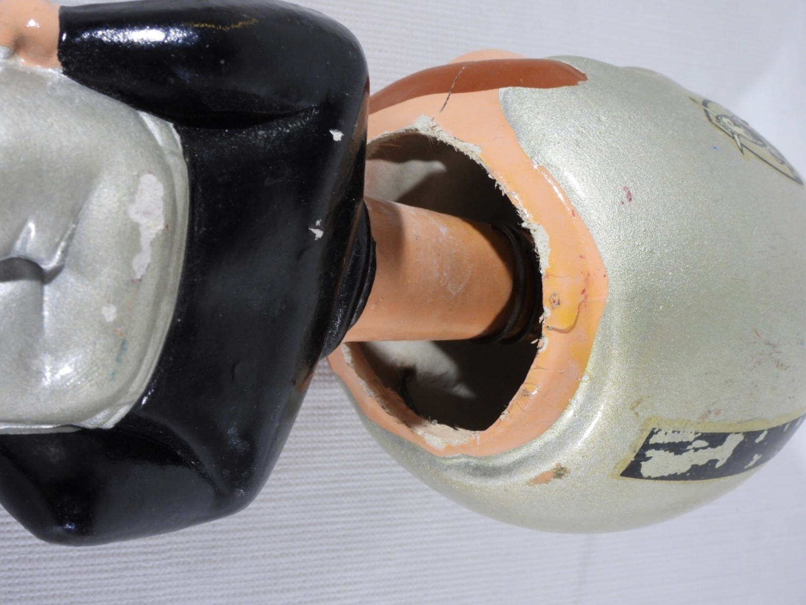 Some wear from the years, still bobbles. Some chipping and cracking around the helmet.