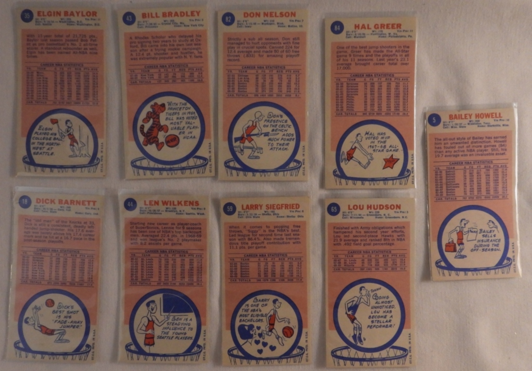 There is a variety of different basketball players such as Bailey Howell,Larry Siegfried, and Lou Hudson. Variety of conditions