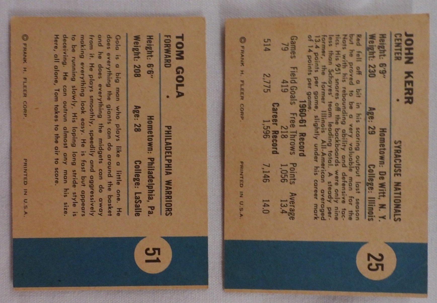 1) Tom Gola # 51. 2) John Kerr #25