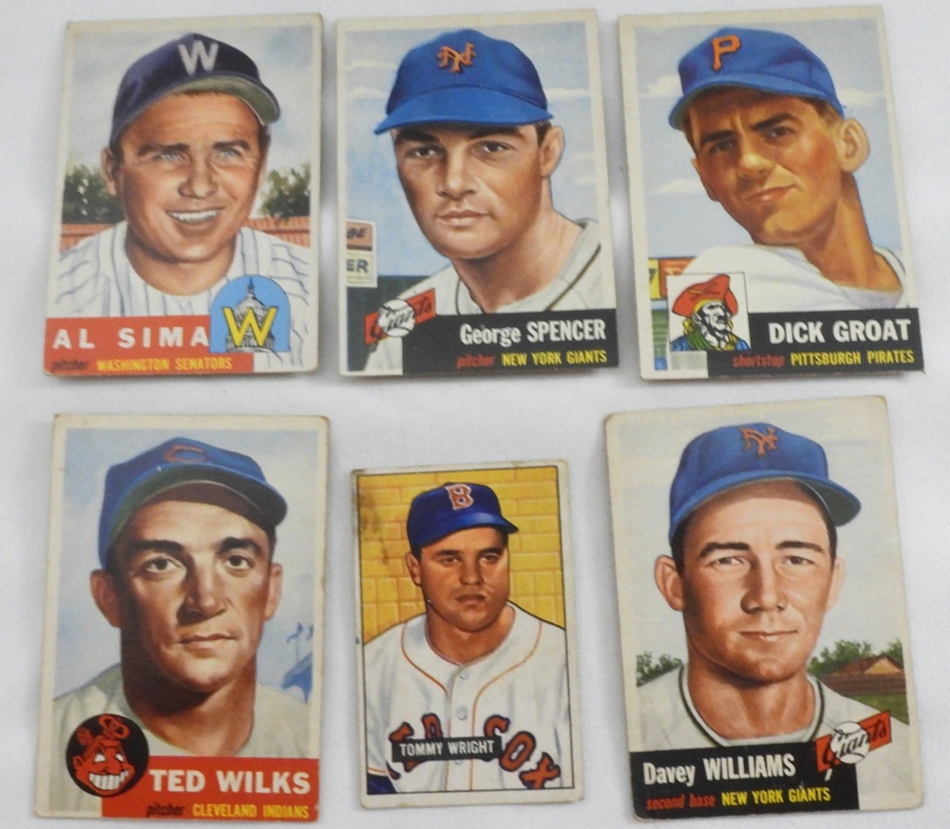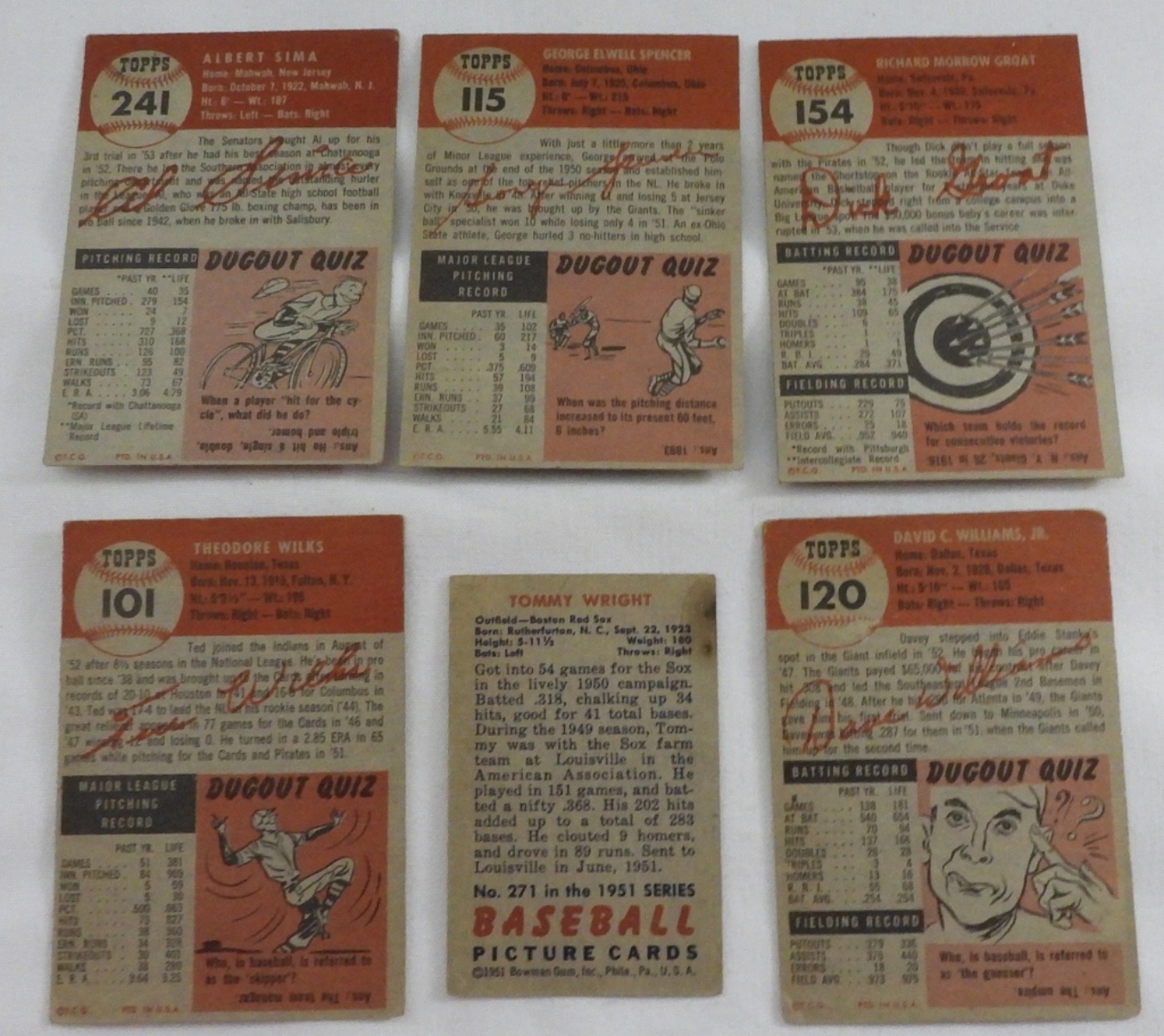 1) Ted Wilks #101. 2) George Spencer #115. 3) Dick Groat #154. 4) Al Sima #241. 5) Tommy Wright #271. 6) Davey Williams #120