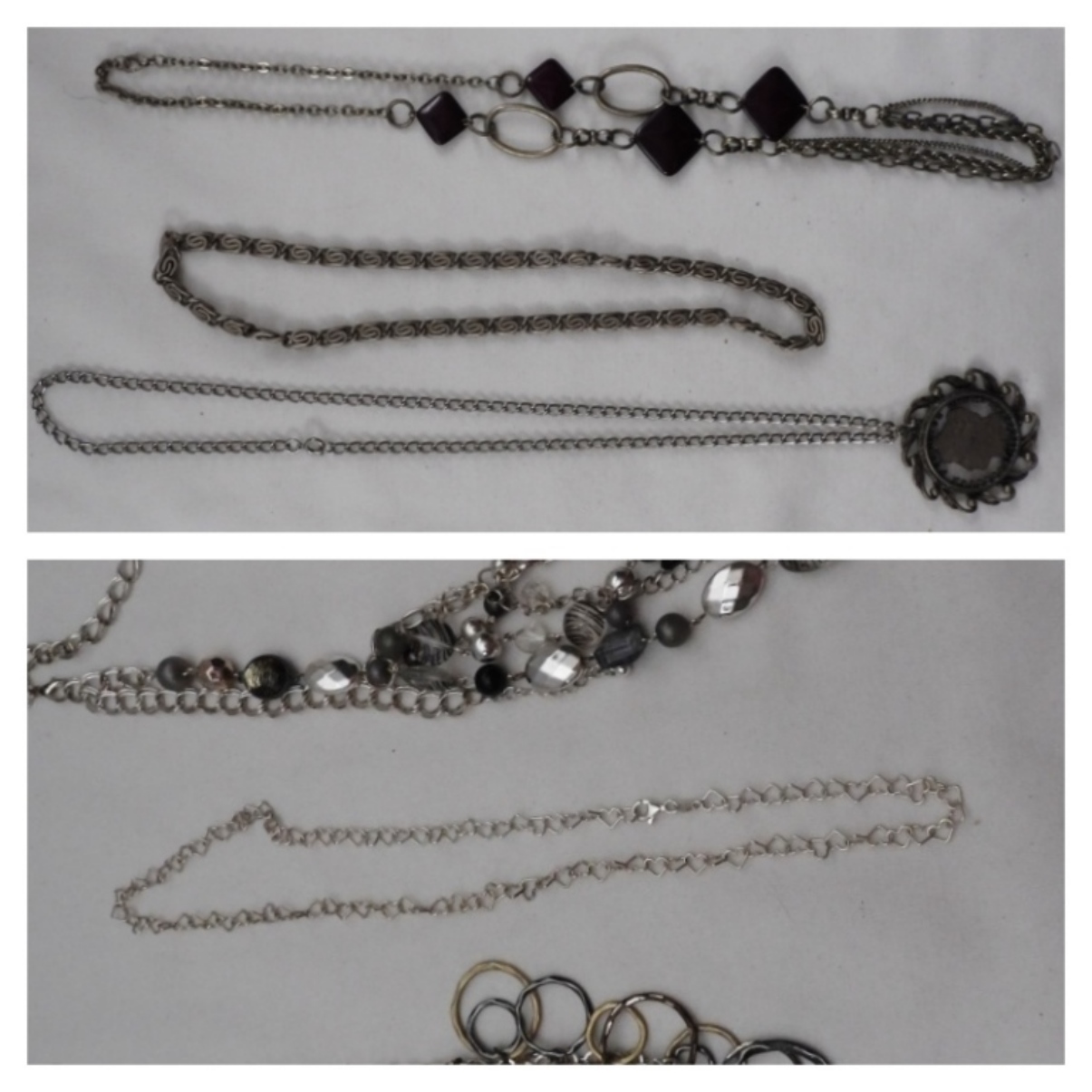 7 gold and silver-tone necklaces, different styles and lengths