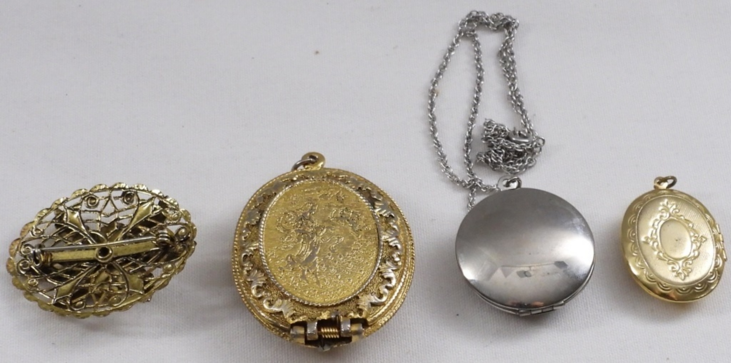 3- Lockets, one still has a chain. 1- Brooch