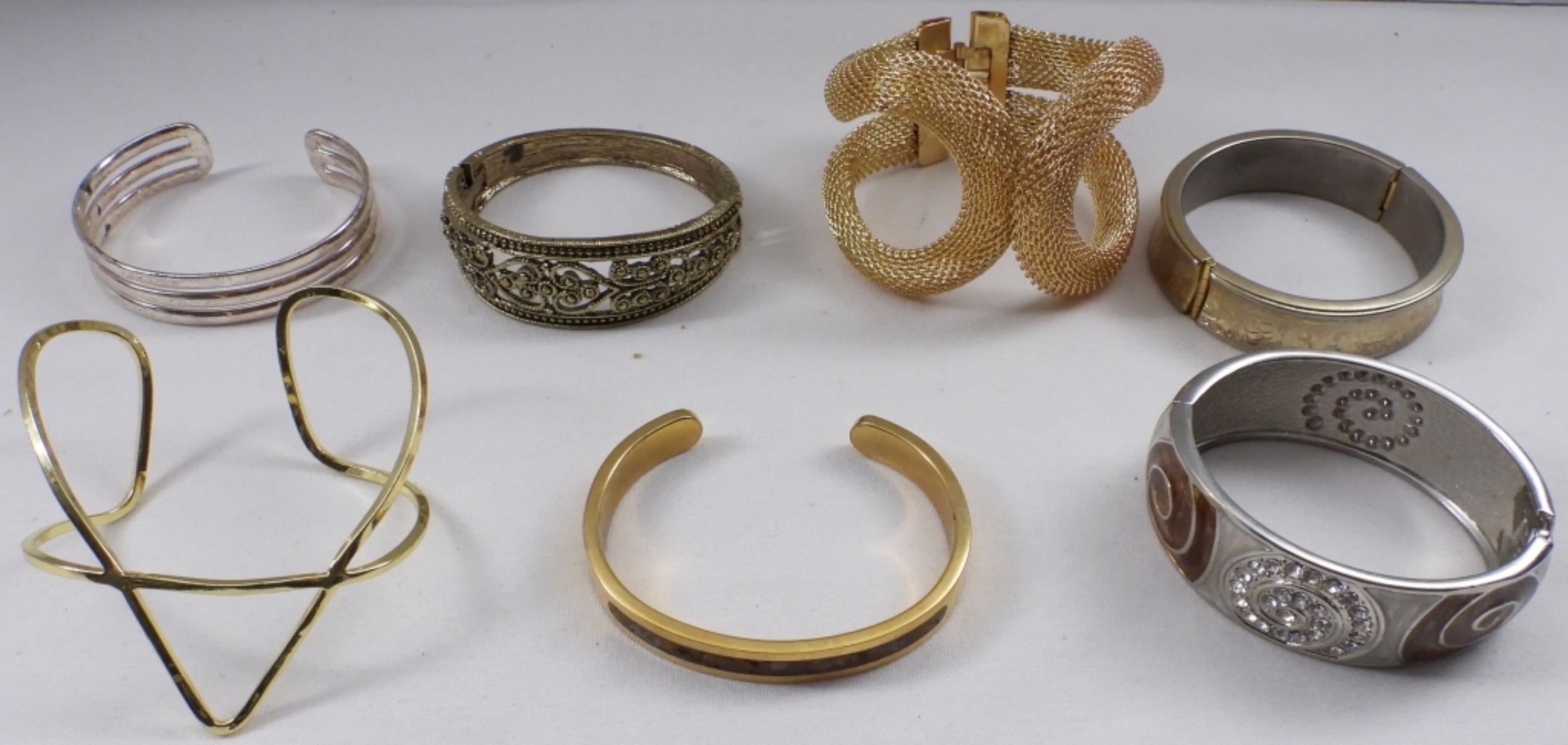 Different styles. Gold-tone and silver-tone