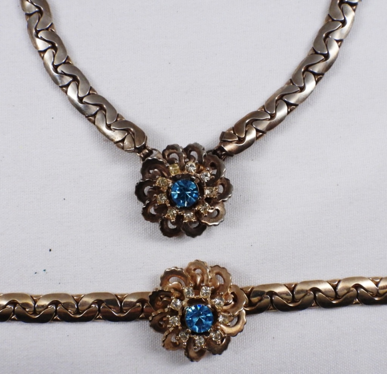 15in long for the necklace and 8in long for the bracelet. All stones are intact.