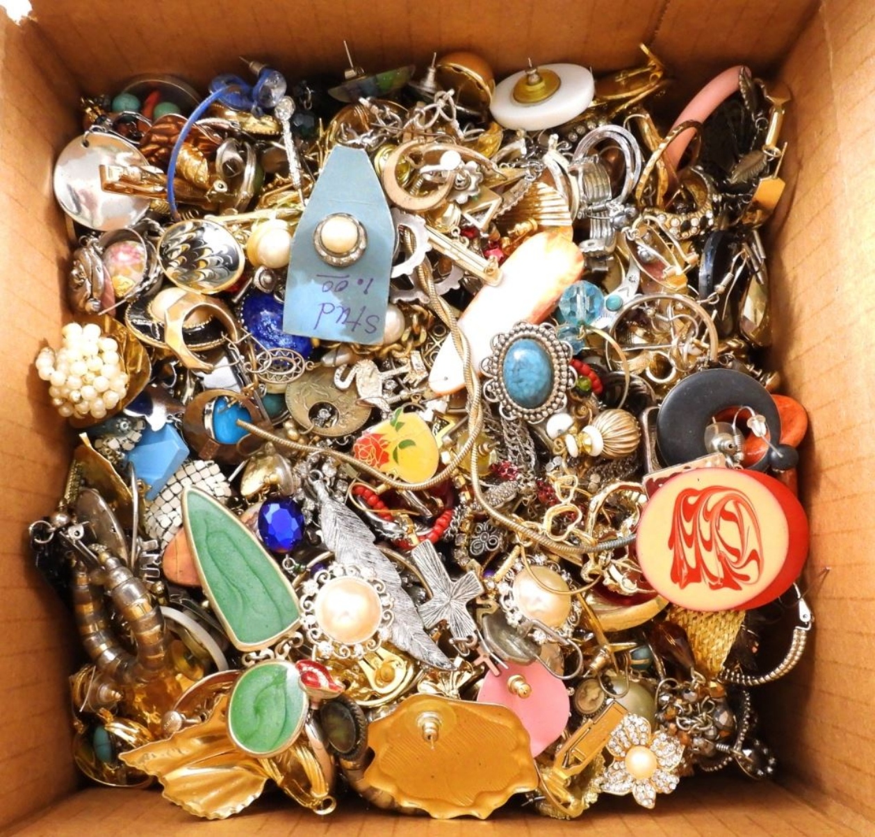 Small Treasure Box- May be broken, tarnished, in need of repair, ETC. Some wearable, great for crafting!
