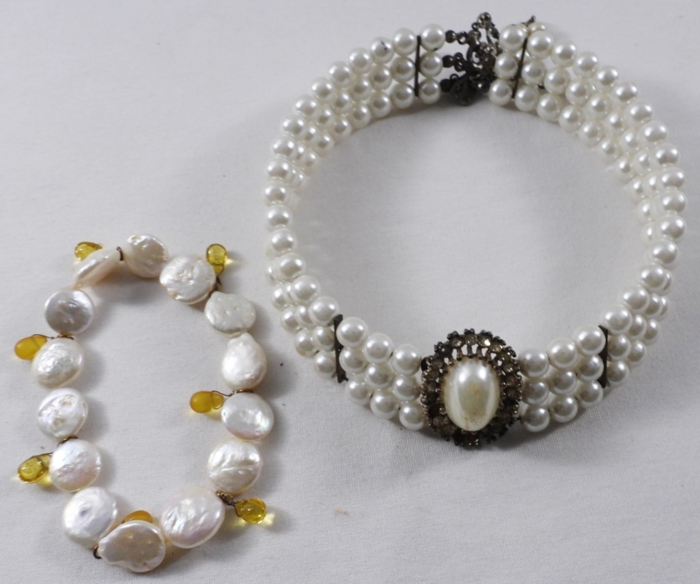 Faux pearl fashion lot- 16″ faux pear necklace, with bracelet.