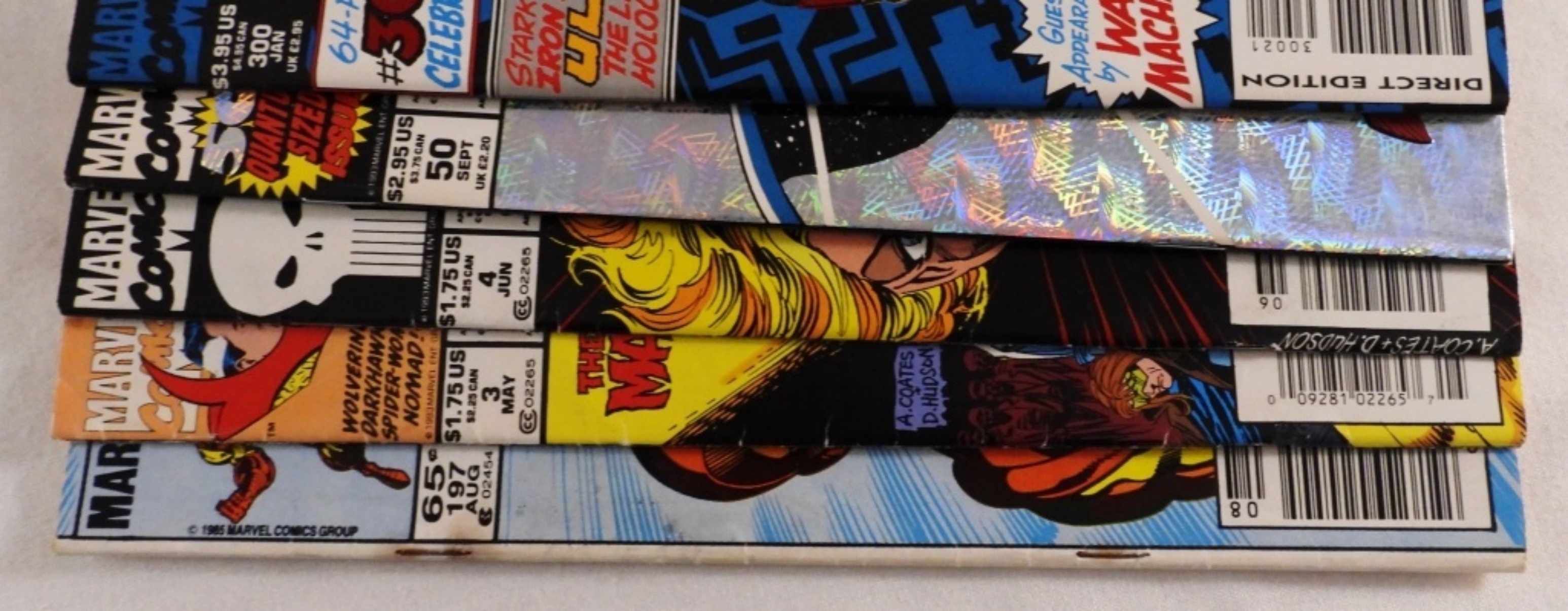 1) The Secret Defenders #3. 2) The Secret Defenders #4. 3) Quasar #50. 4) Iron Man #300. 5) Iron Man 197.