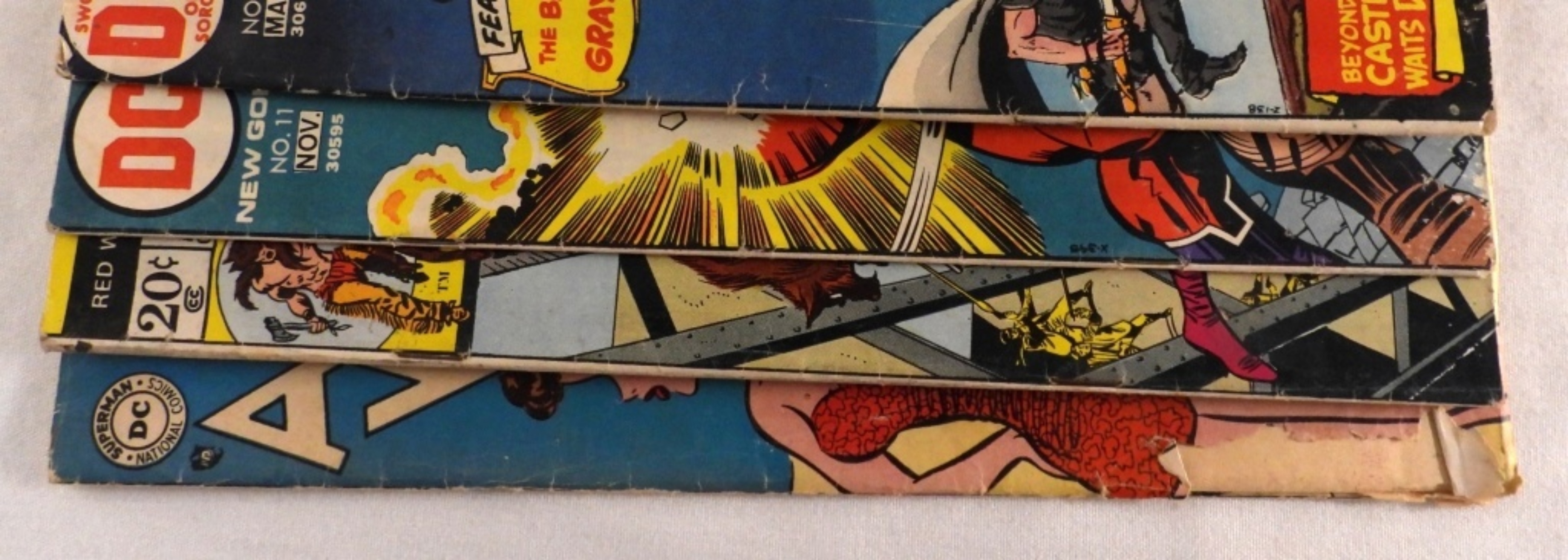 A date with Judy – 1954 Fair condition. Red Wolf – 1973 good condition. The New Gods – 1972, fair condition. Sword of Sorcery – 1973, fair condition.
