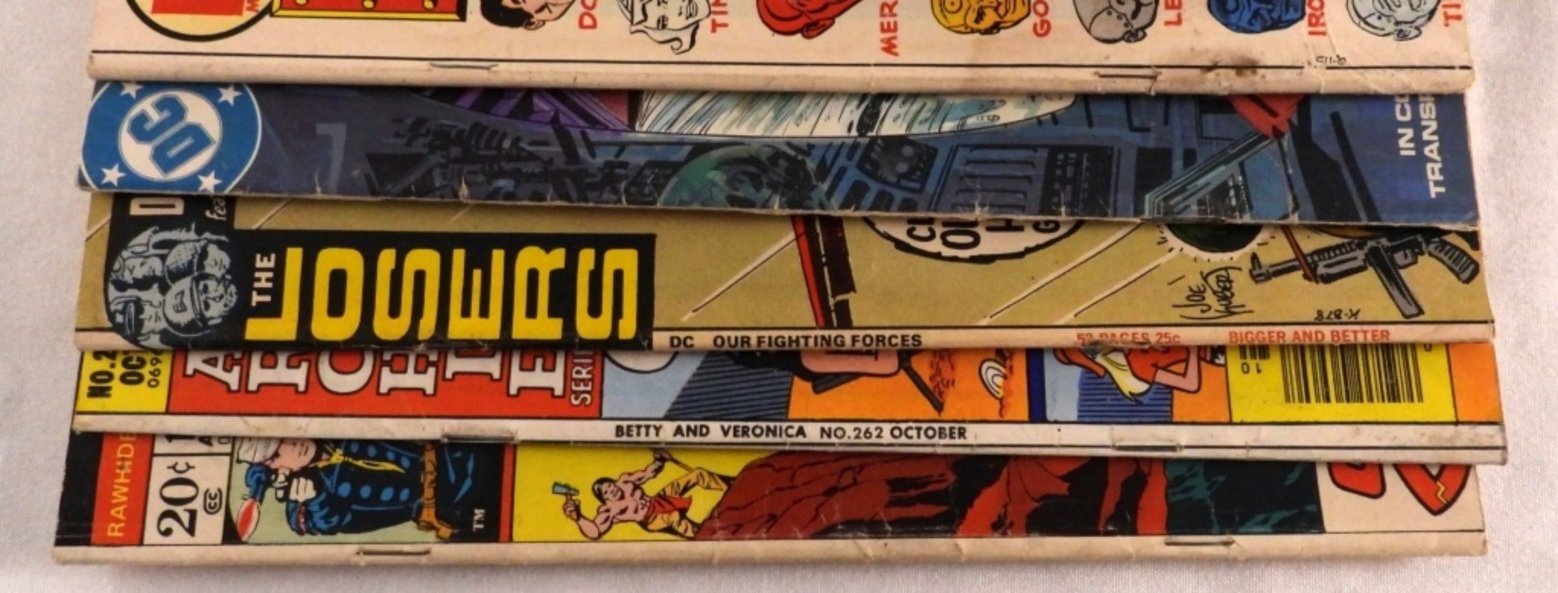 Rawhide Kid #114 1973 good condition. Betty and Veronica #262 1977 good condition. Our Fighting Forces #137 1972 good condition. Supergirl 1984 good condition. Metal Men #42 1973 fair condition.