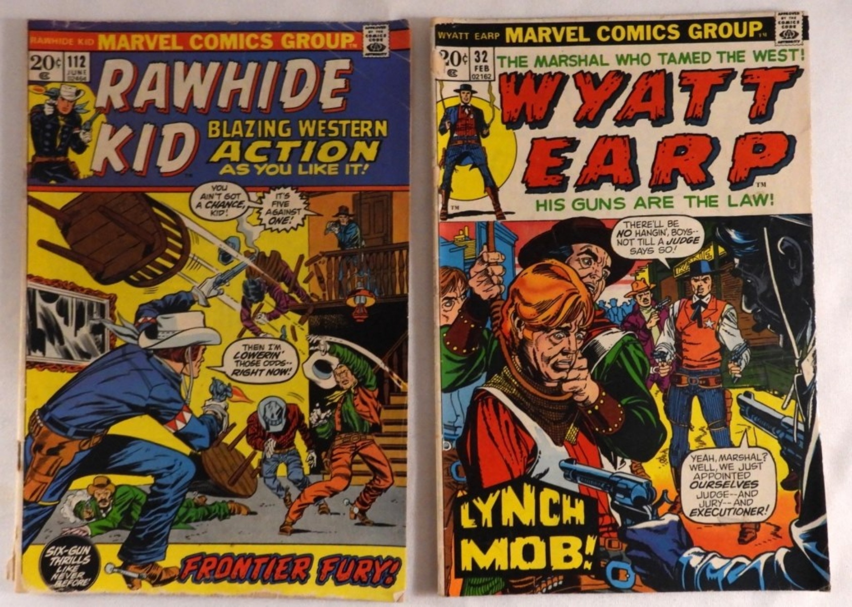 Both are 1973, The Rawhide Kid is in fair condition, Wyatt Earp is in good condition. Bronze Age.