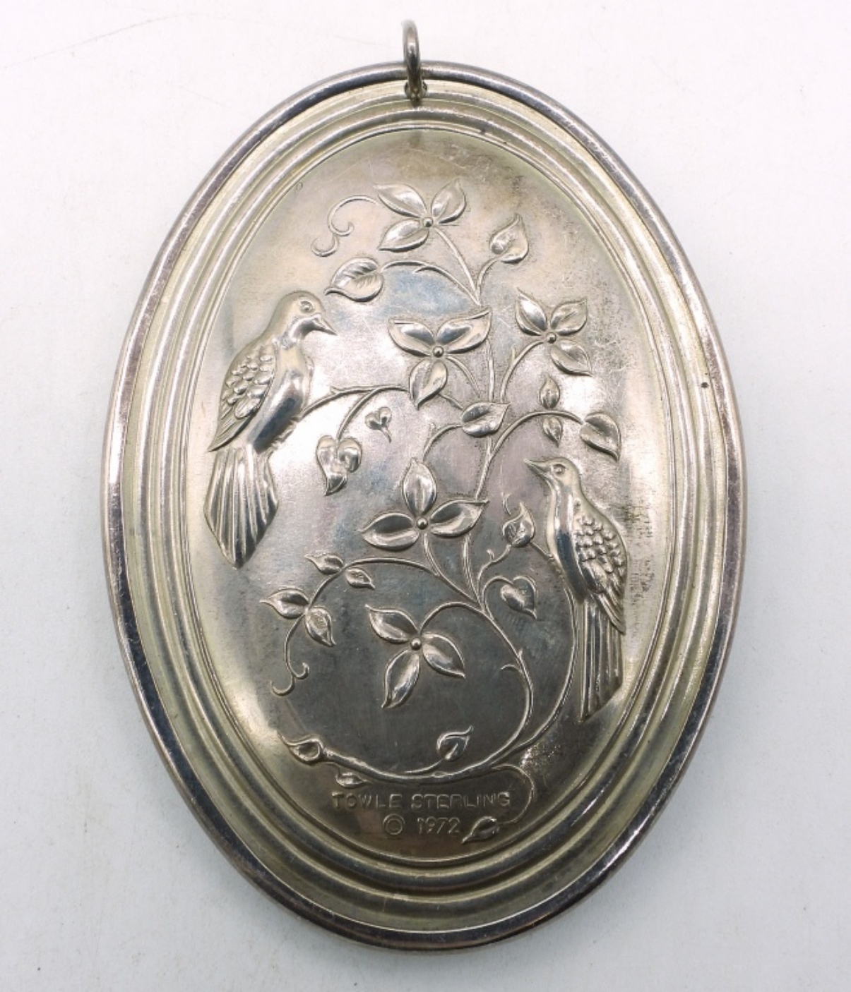 Vintage Towle, sterling holiday ornament from 1972. 3″ x 2″. (16.9 DWT)