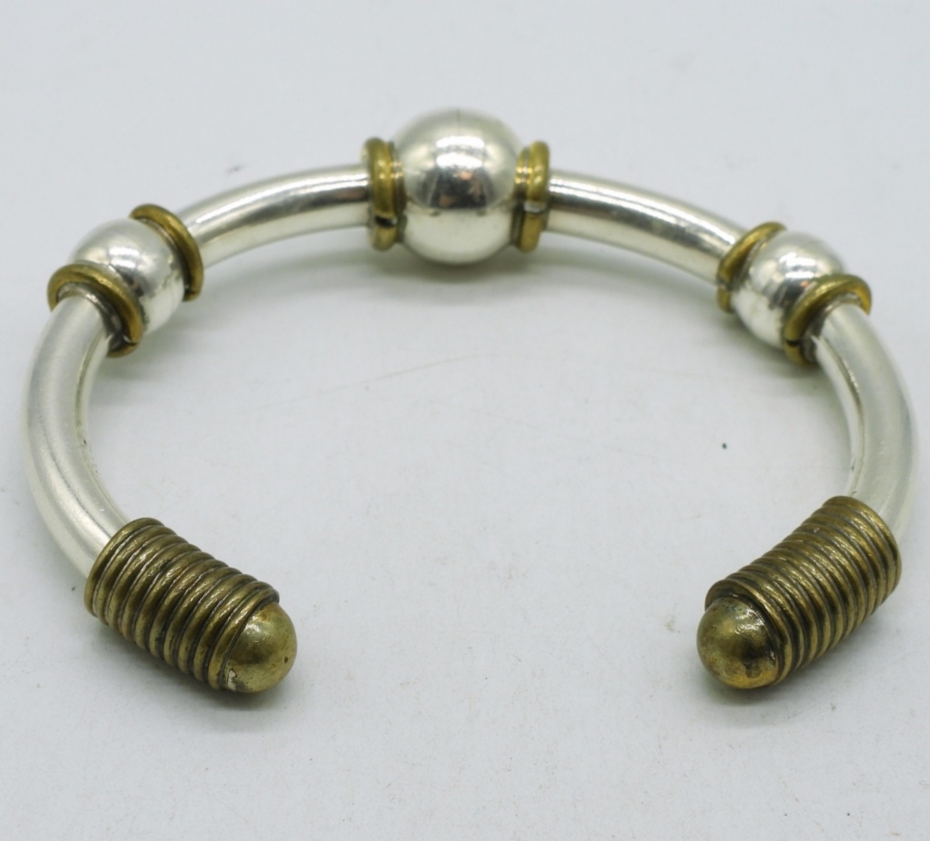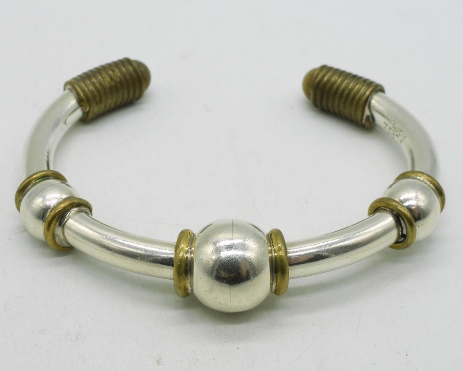 Taxco sterling and gold tone bracelet. “TD-76 Mexico 925”. (17.6 dwt)
