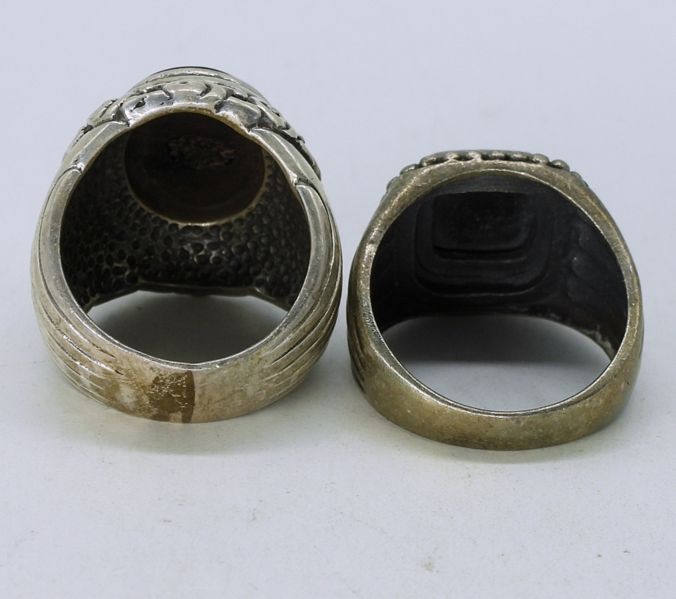 Sterling Mexico cross necklace with black onyx inlay. Pendant is 2″ long. Chain is 30″. Two sterling rings with black onyx gems. Sizes 6 & 9. (30.4 dwt)
