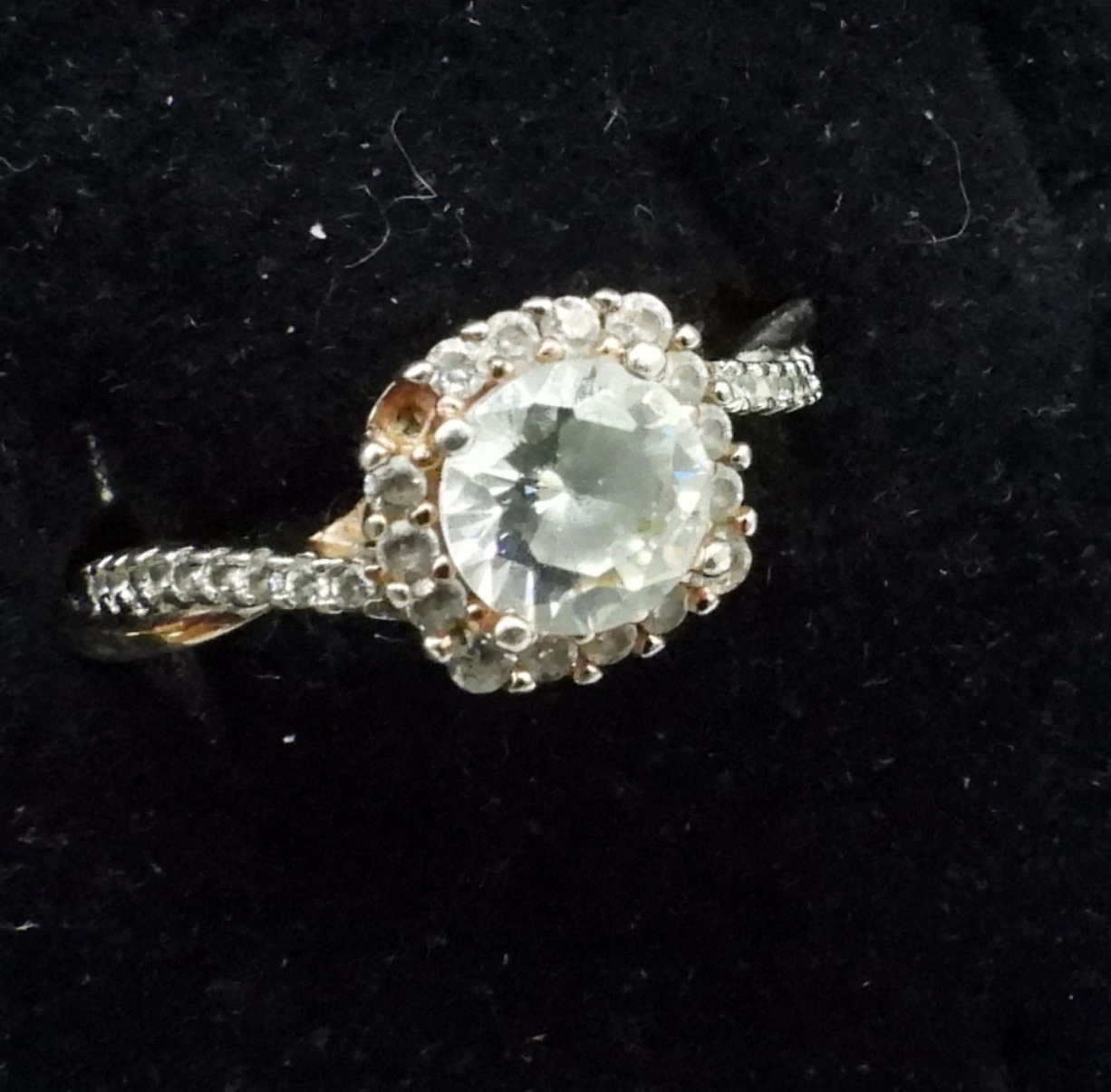 Eight sterling bridal style fashion rings. Sizes 5-10. Several rings are missing some gemstones. See photos.