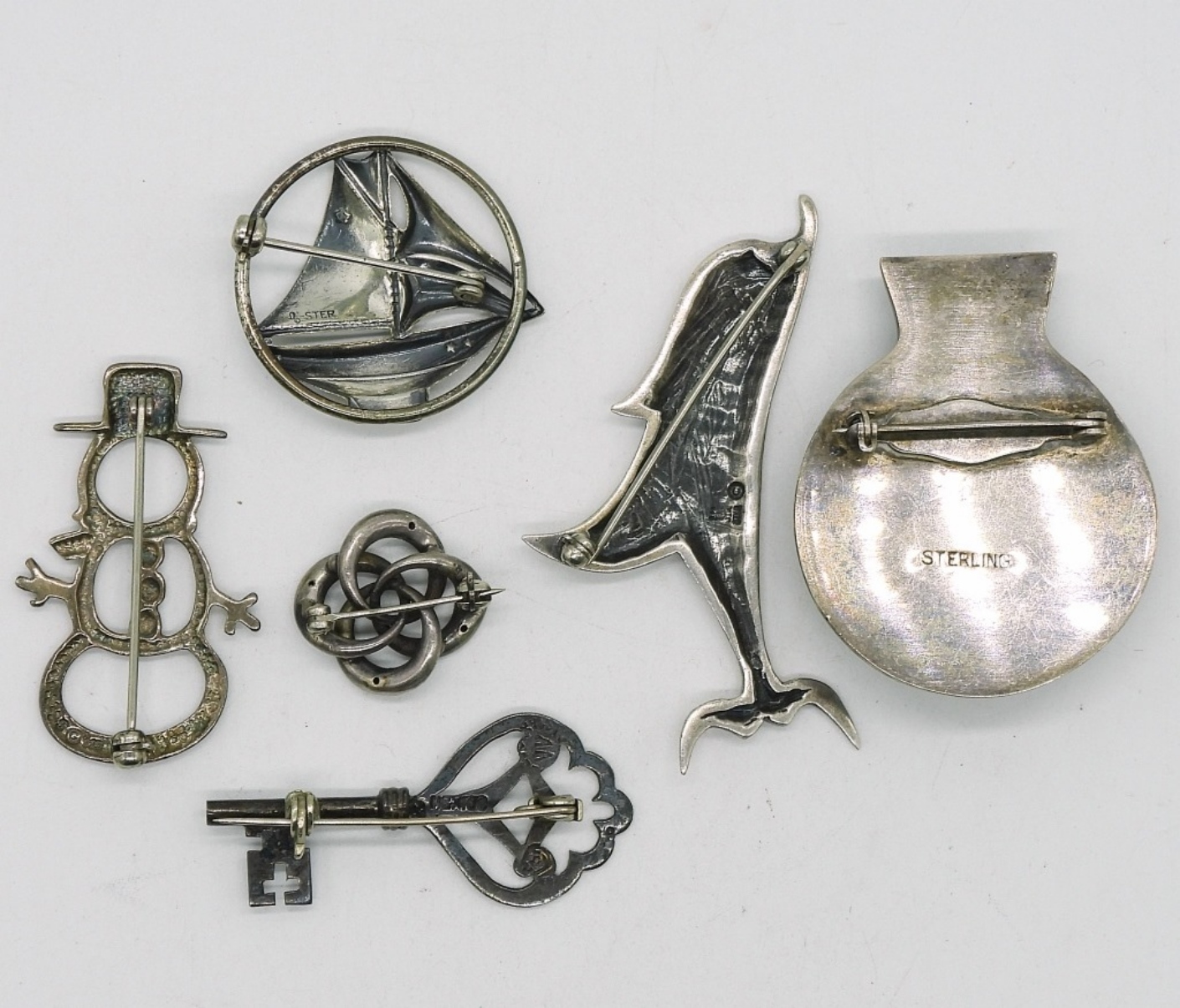 Six sterling brooches. 3/4″ – 2″. (25 dwt)