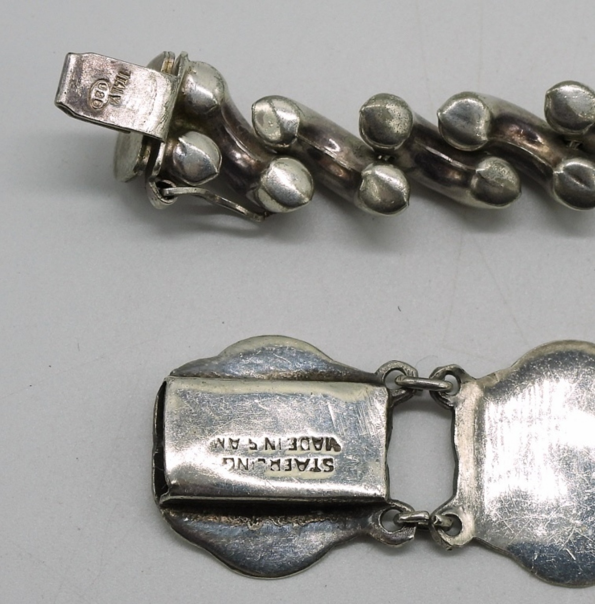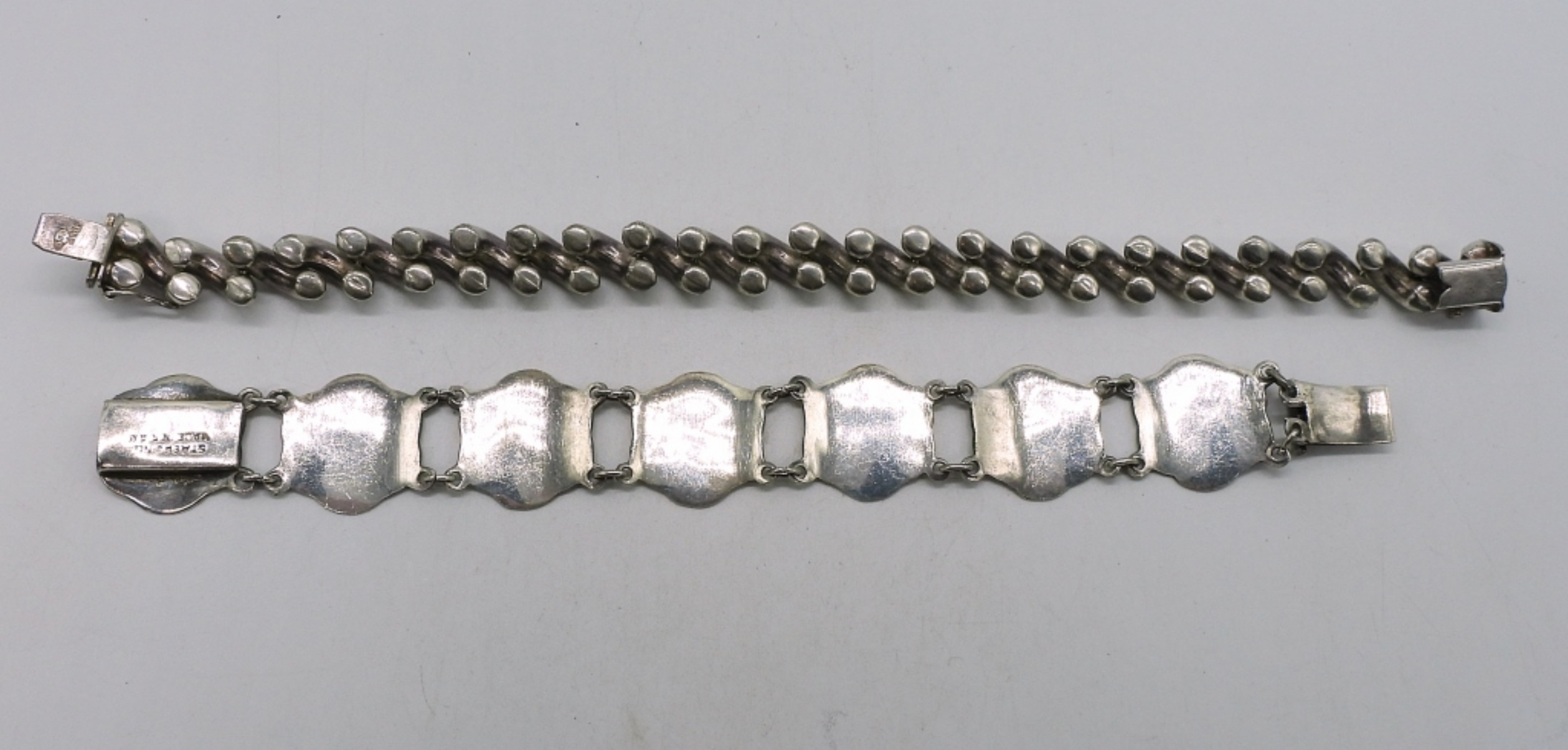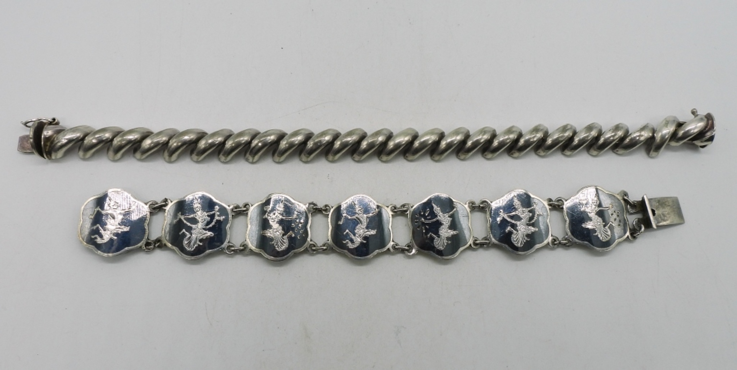 Two sterling bracelets, one Siam. 6.5″ & 8″. (27.8 dwt)