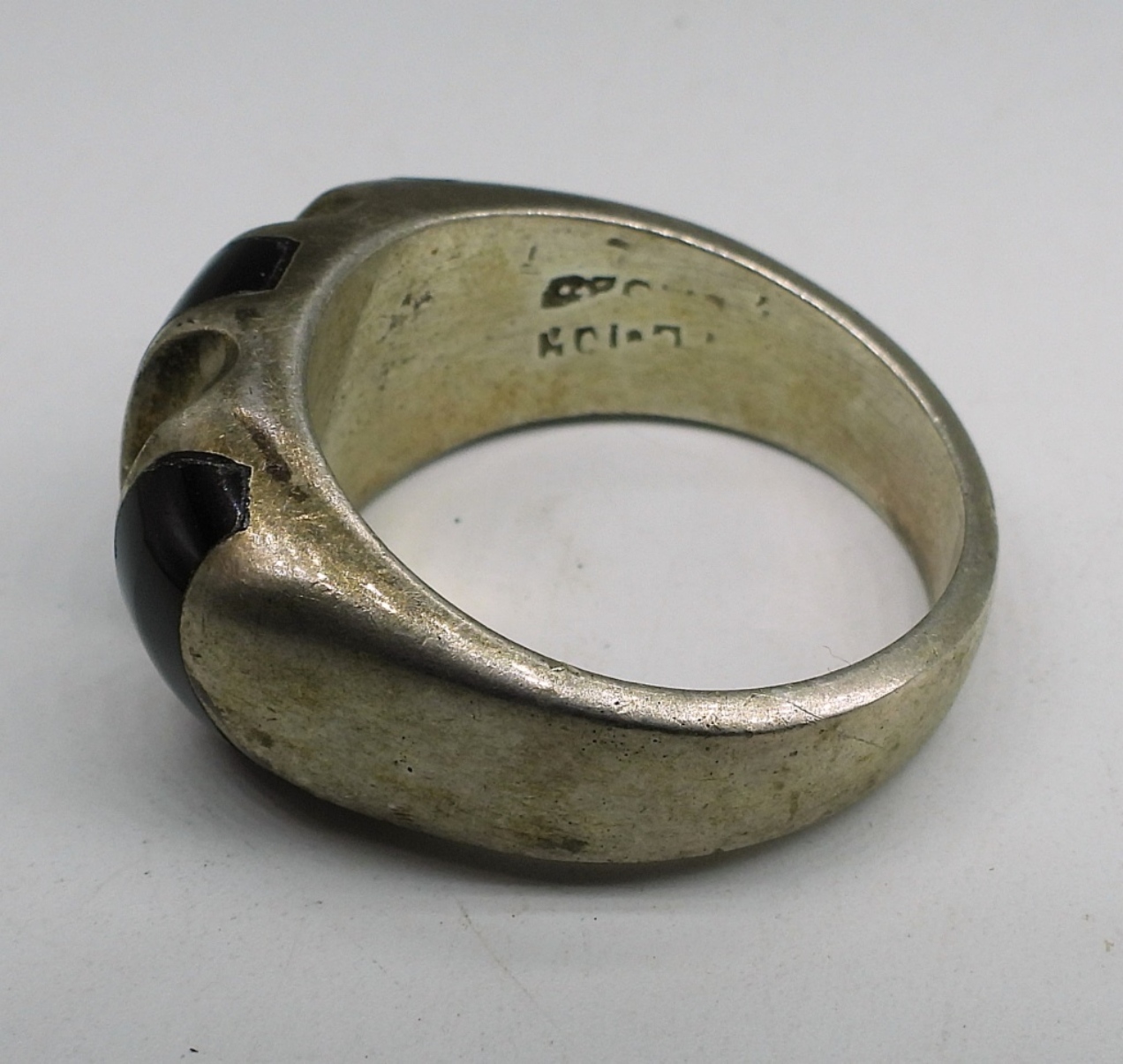 Three sterling black onyx rings, sizes 8 & 11. (22.8 dwt)