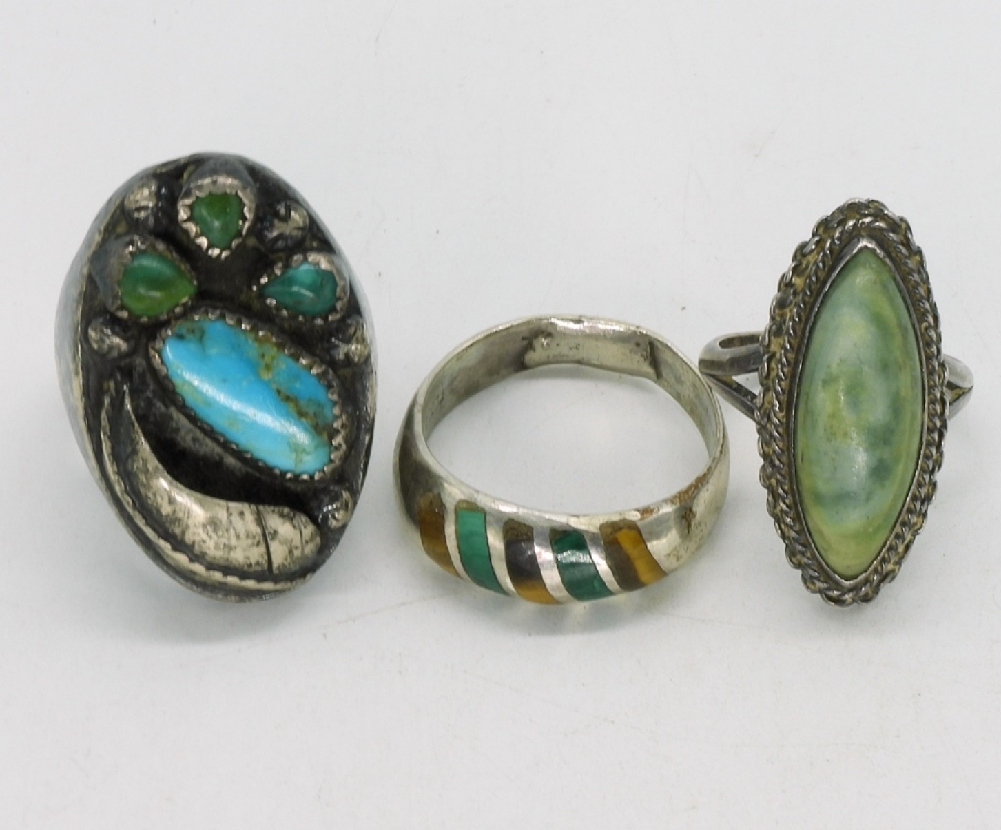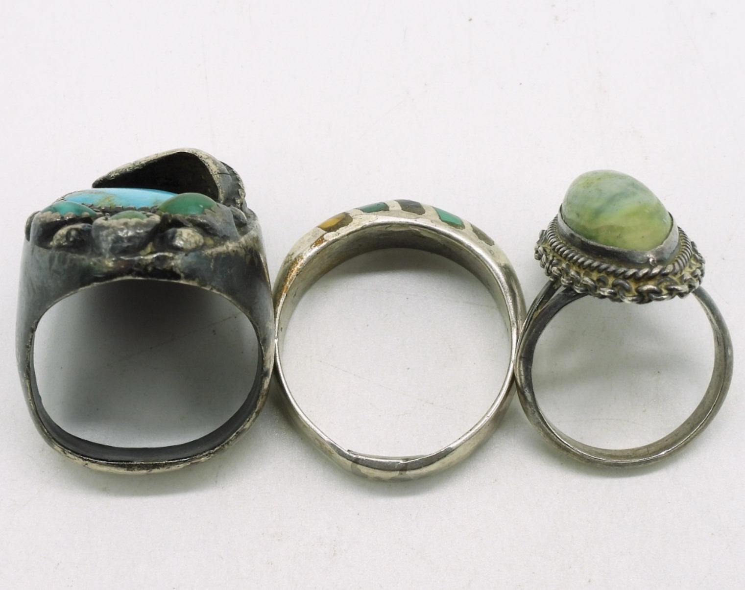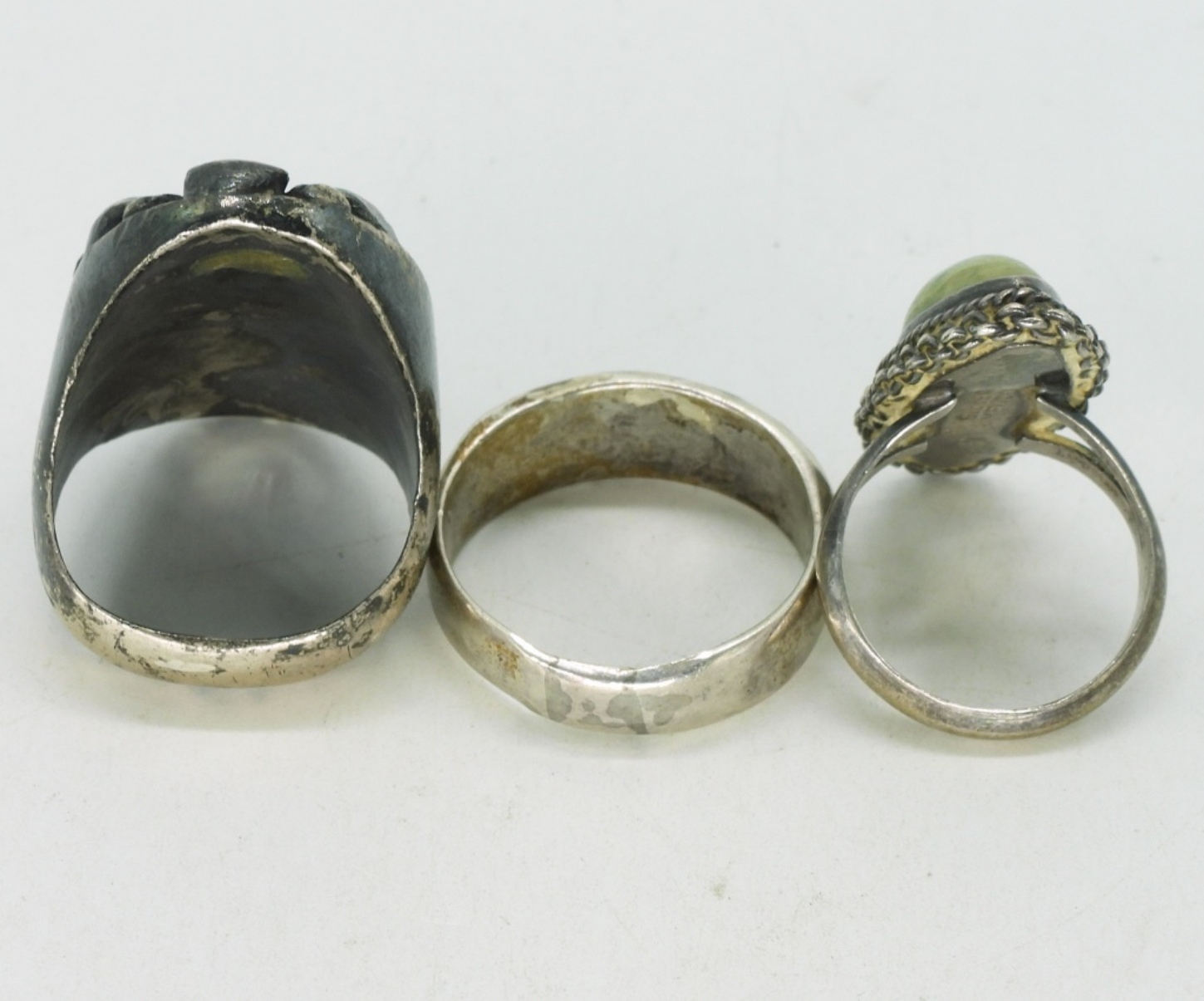Three vintage sterling rings, sizes 7, 11.5, 10. These rings are not perfect, see photos. (24.9 dwt)