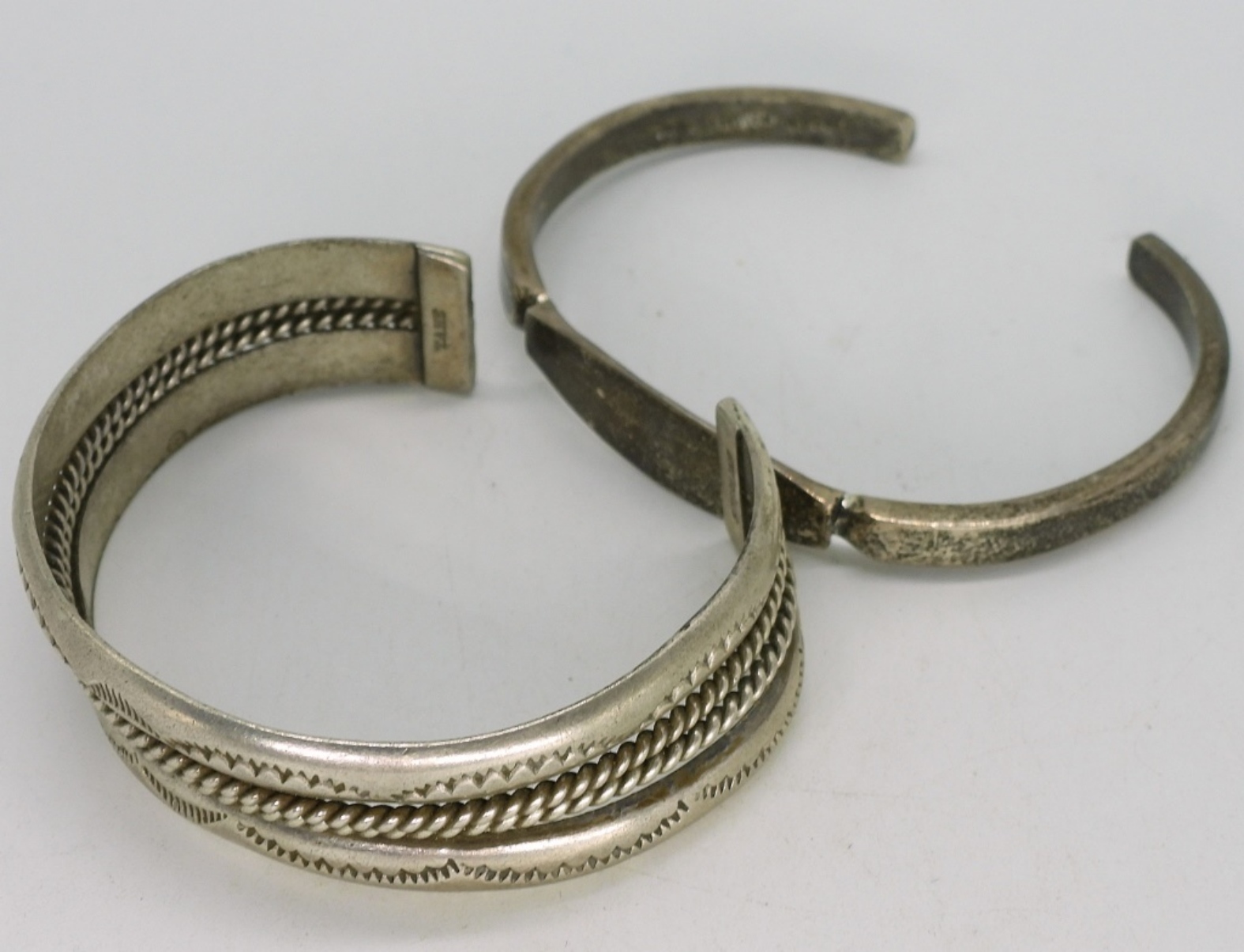 Taxco Mexico sterling ID cuff bracelet (Not engraved) and other sterling cuff bracelet. (29.7 dwt)
