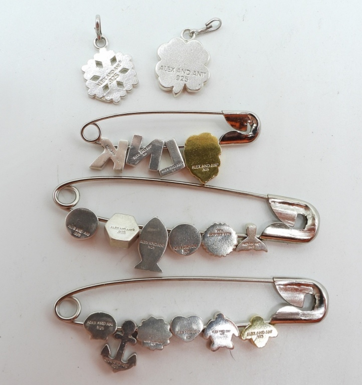 Alex & Ani, sterling bracelet & charms. 17 sterling Alex & Ani charms. Full adjustable sterling bracelet made for the charms. 9″ max. (9.9 dwt)