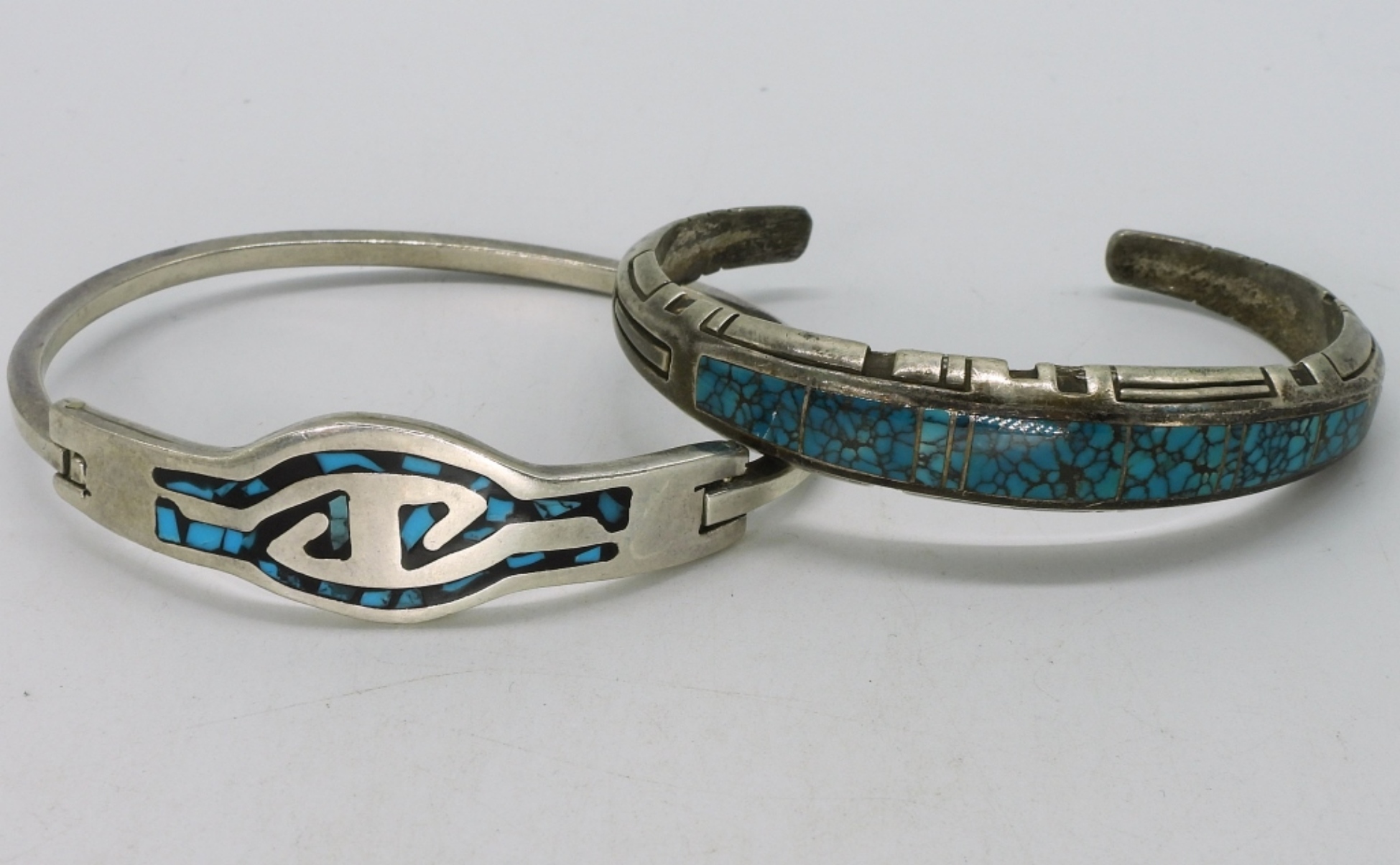 Two sterling, vintage turquoise bracelets. (31.8 dwt)