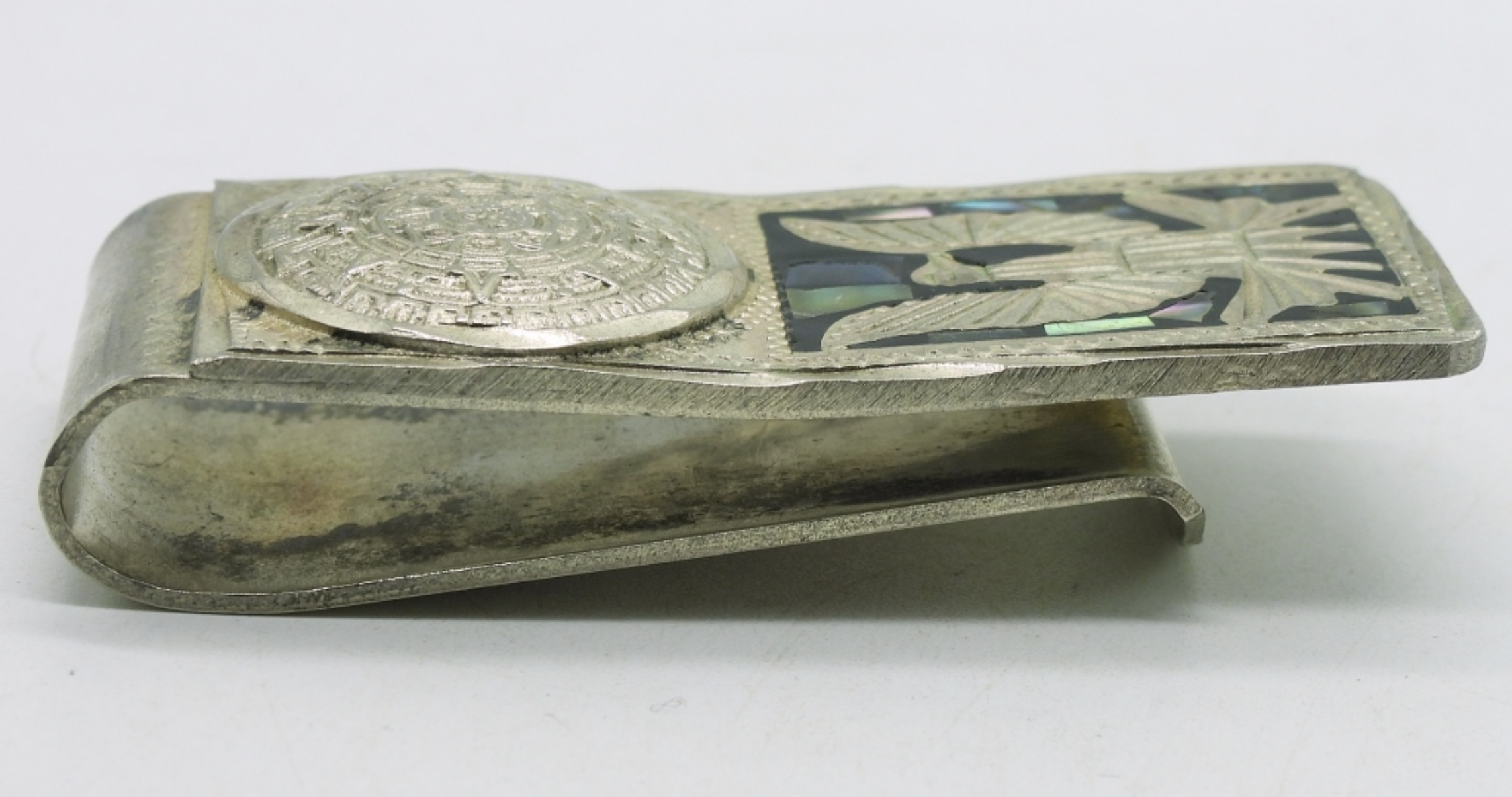 Vintage, Alpaca Mexico Money Clip with Abalone Inlay. 2.5″. (24.2 dwt)