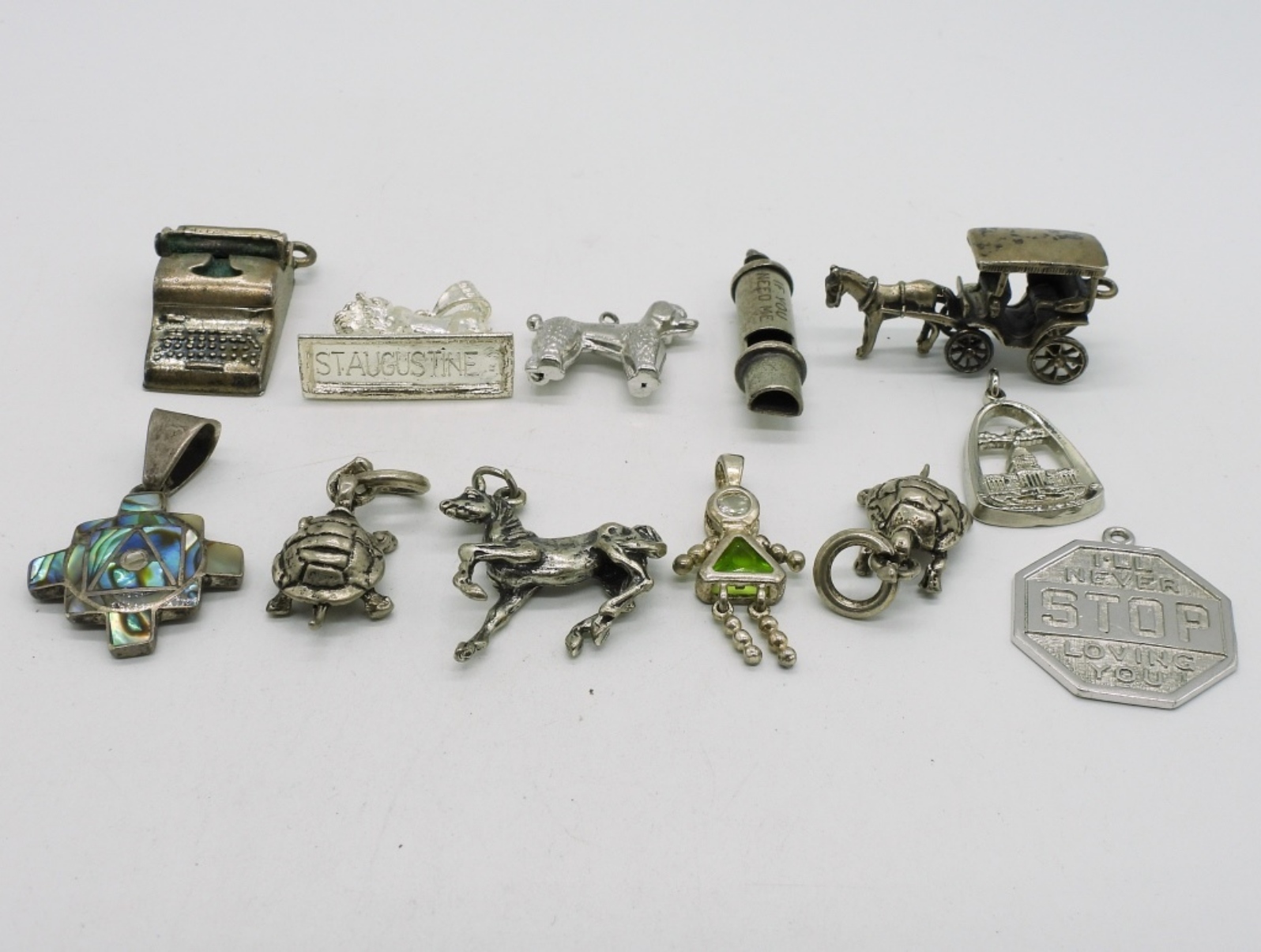 Twelve vintage sterling charms. (36.8 dwt)