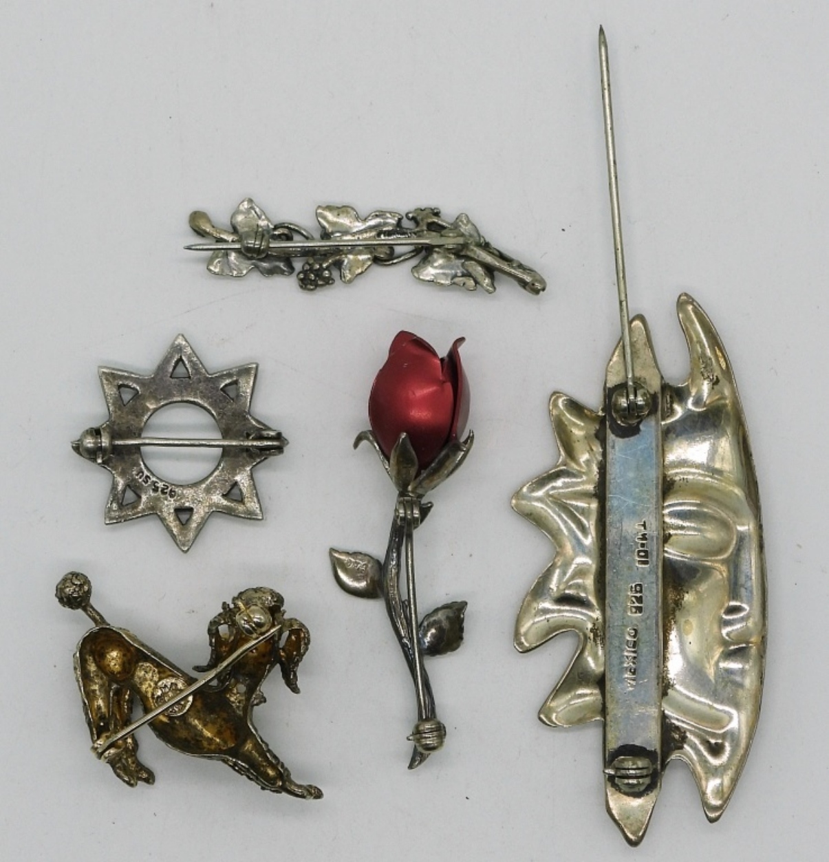 Five vintage sterling brooches. 1″-2.5″ (20.2 dwt)