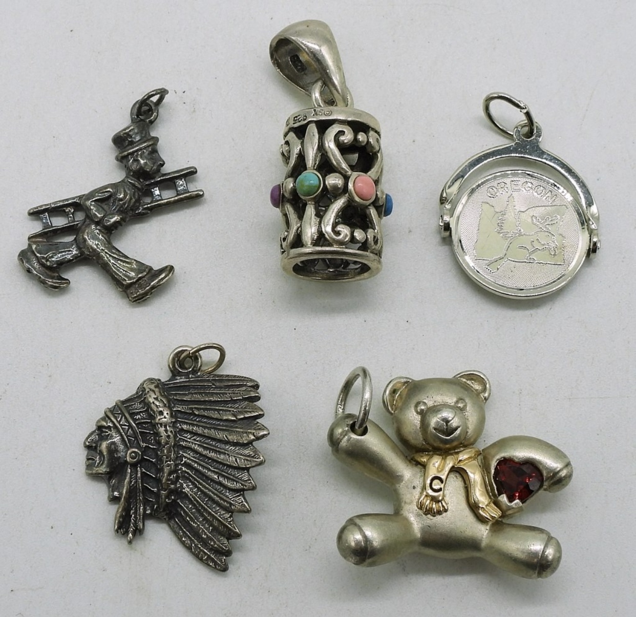 Five sterling pendants. (14 dwt)