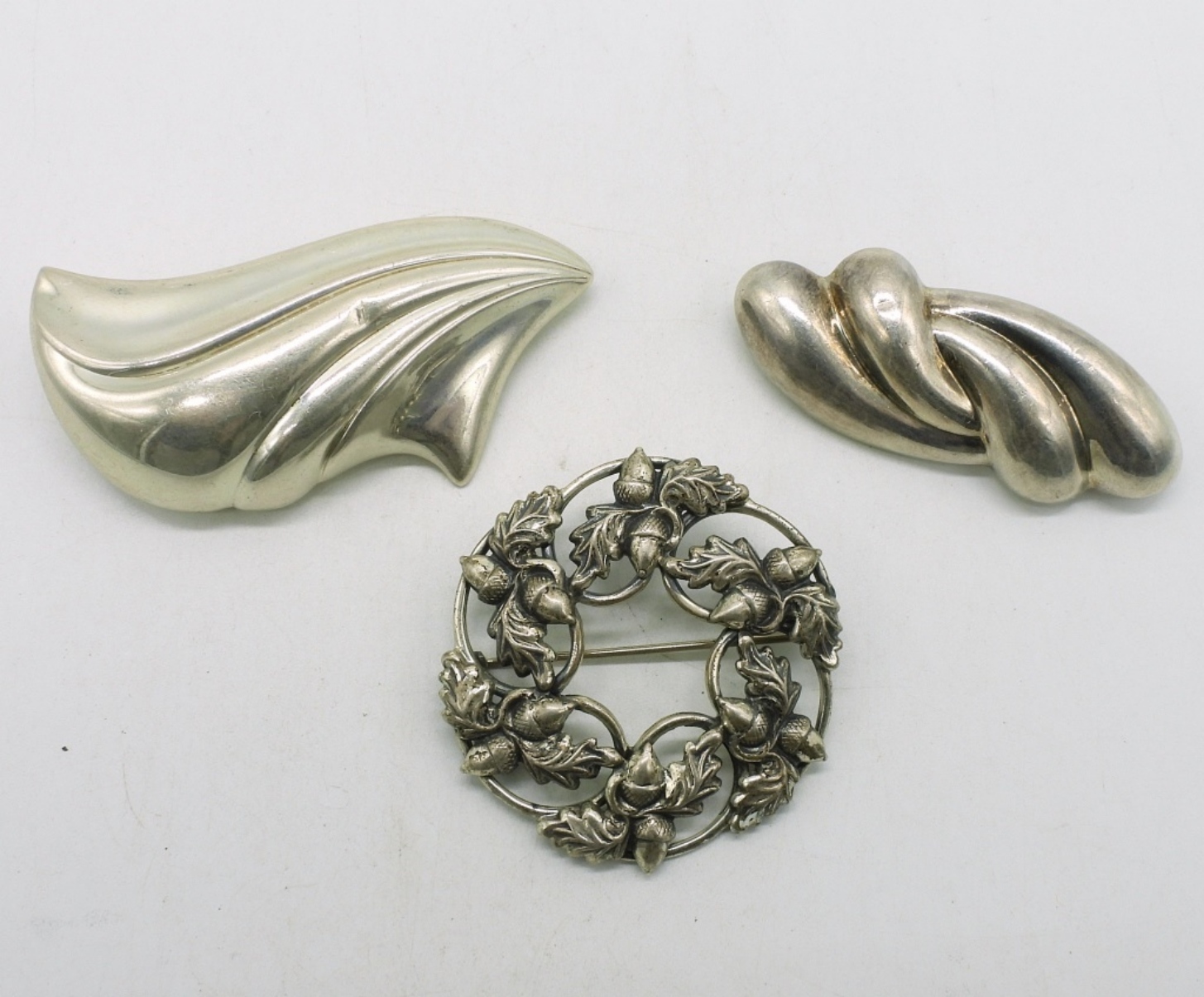 Three sterling vintage brooches. 1.5 – 2.5 inches. (21.7 dwt)