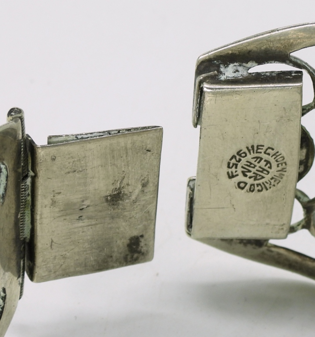 Sterling Mexico Abalone Bracelet, 7″ long, 1.5″ wide. Sterling abalone ring, size 10 (34.5 dwt)