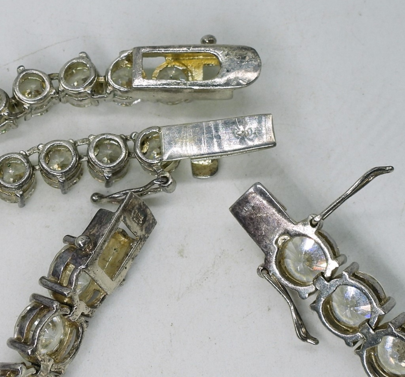Large simulated diamond necklace and matching bracelet. Necklace is 17″, Bracelet is 7″. (28 dwt)