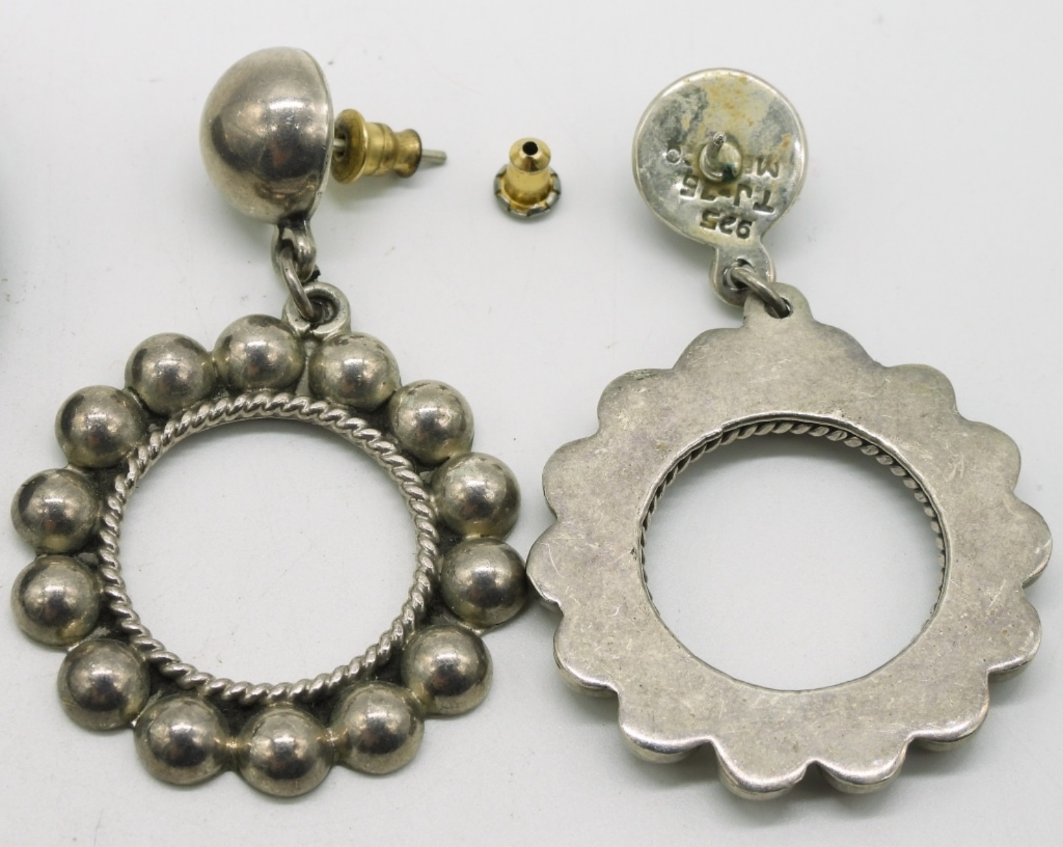 Two pair of vintage sterling pierced earrings. Circular set is Taxco. (20.5 dwt)