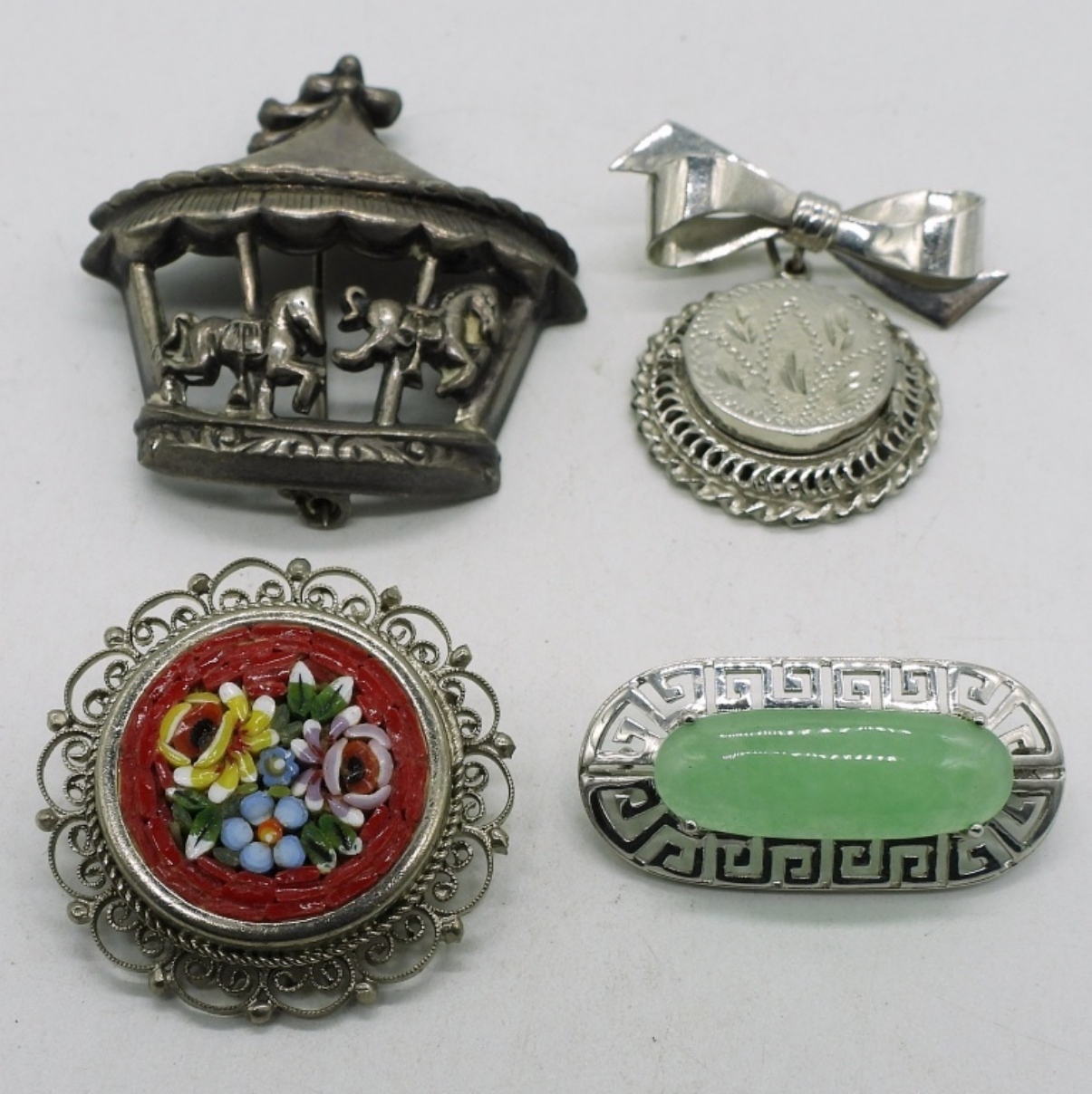 Four sterling vintage brooches. 1″ – 2″. (19 dwt)