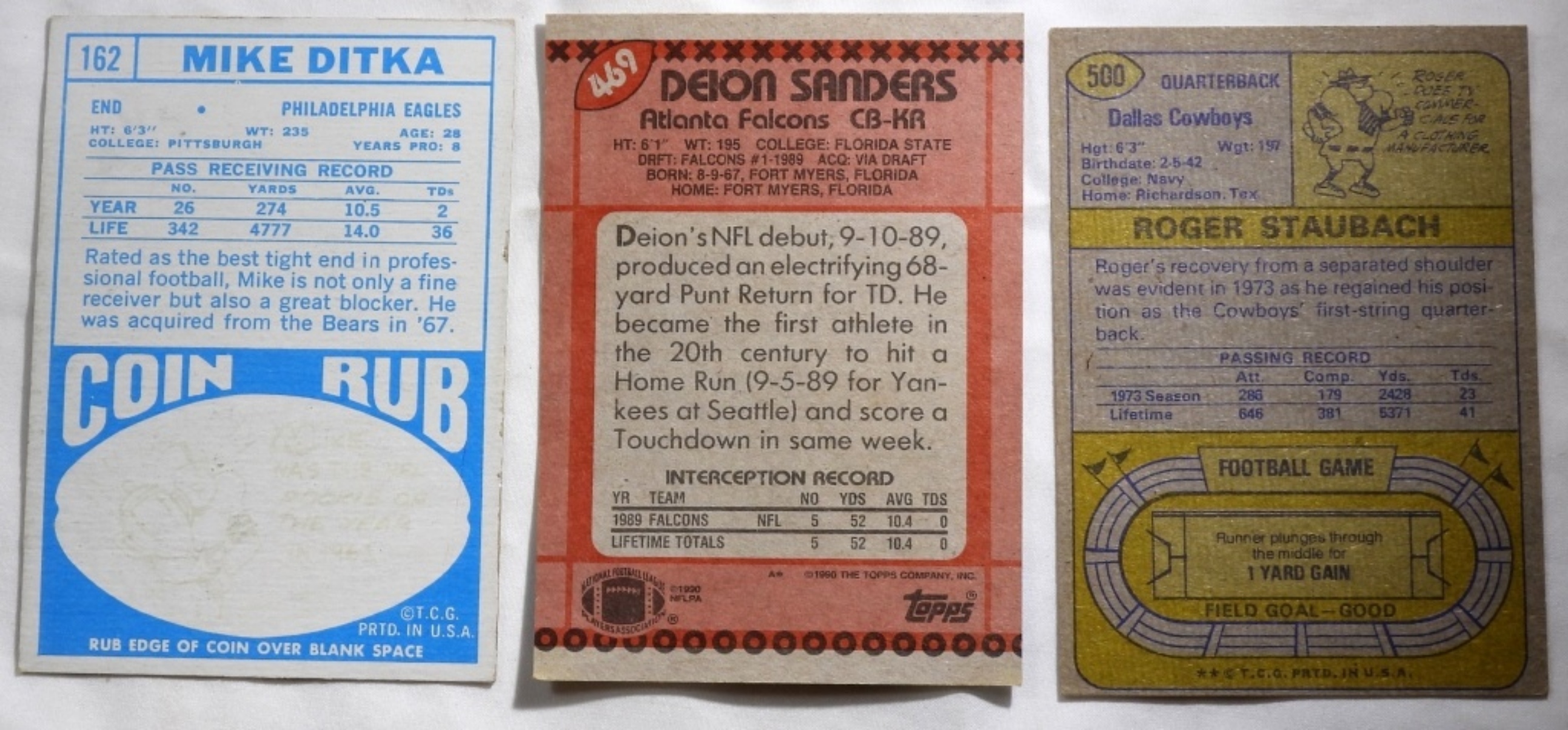 1) Mike Ditka #162. 2) Deion Sanders #469. 3) Roger Staubach #500