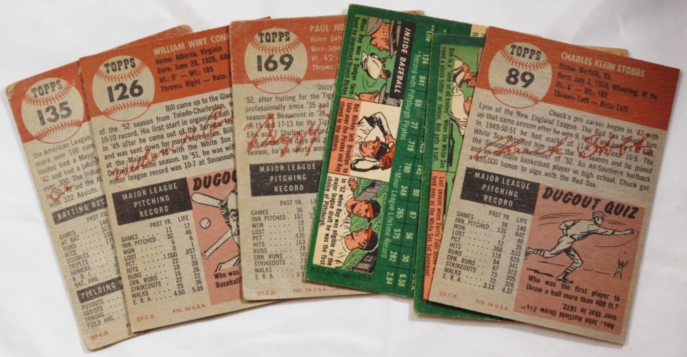 1) Al Rosen #135. 2) Bill Connelly #126. 3) Dizzy Trout #169. 4) Roy Face 87. 5) Bob Boyd #113. 6) Chuck Stobbs 89.