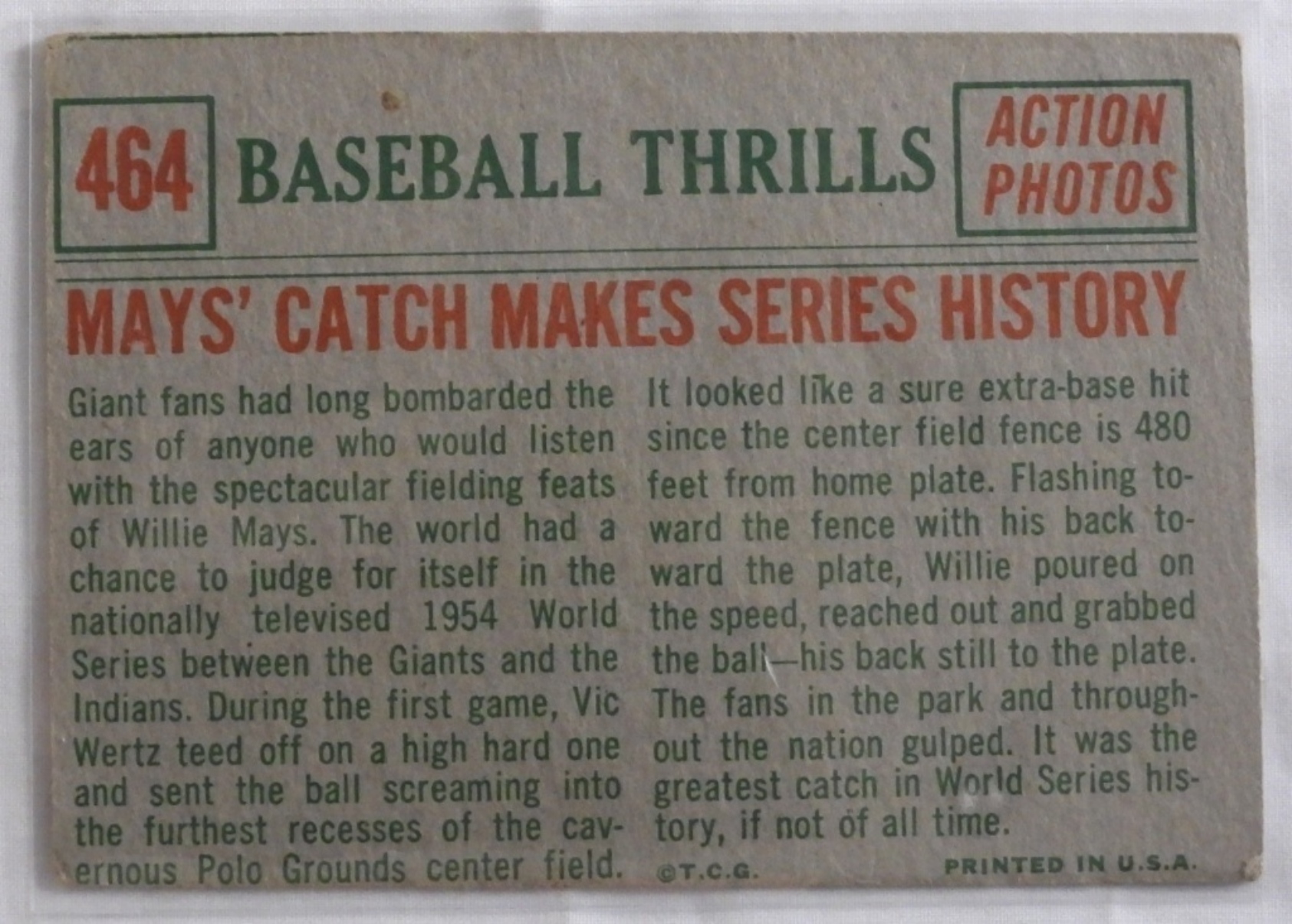 Mays’ Catch Makes Series History! (There is a bend in the card!)