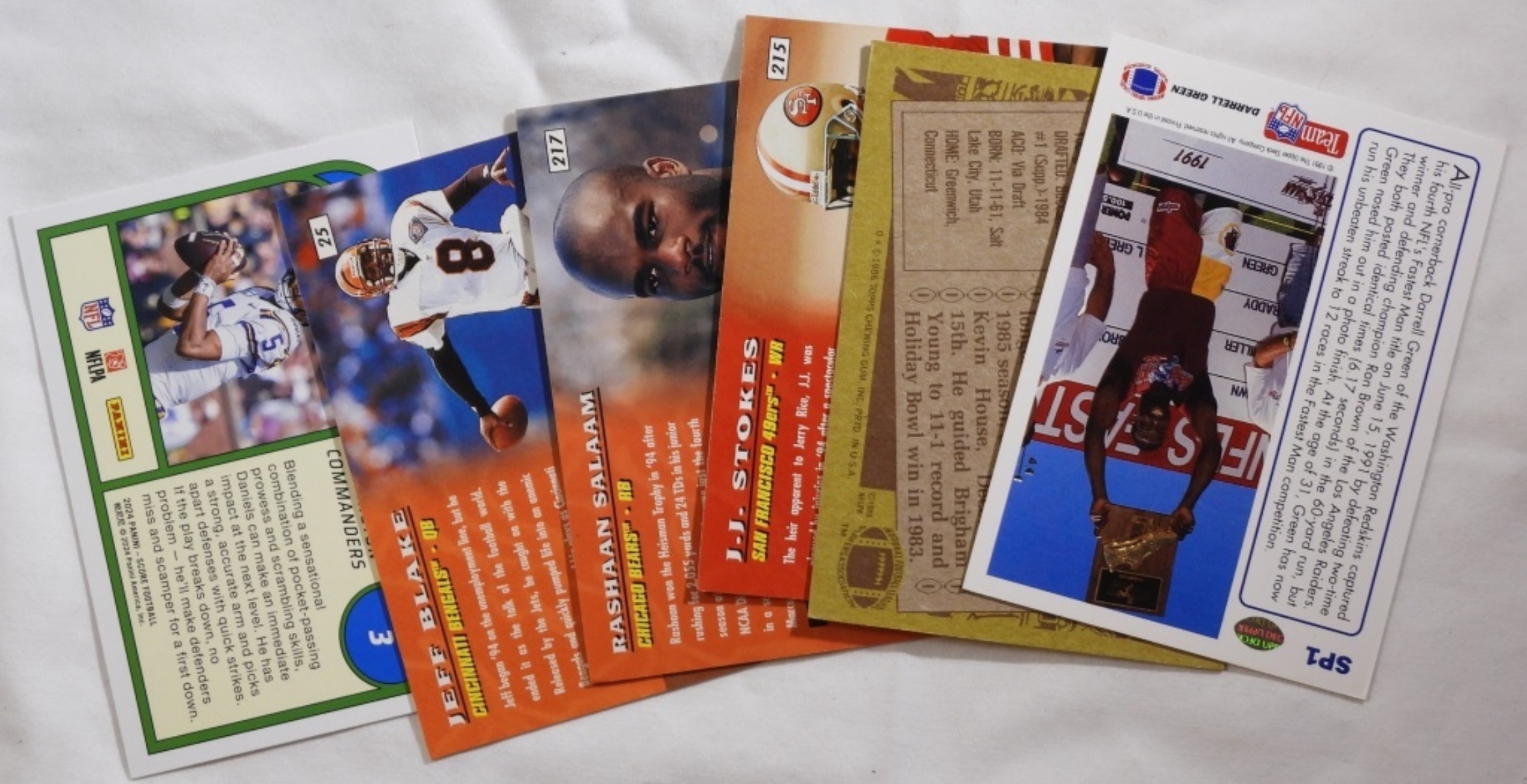 J.J. Stokes, Rashaan Salaam, Jeff Blake, Jayden Daniels, Steve Young, and Darrell Green. 1986-2024
